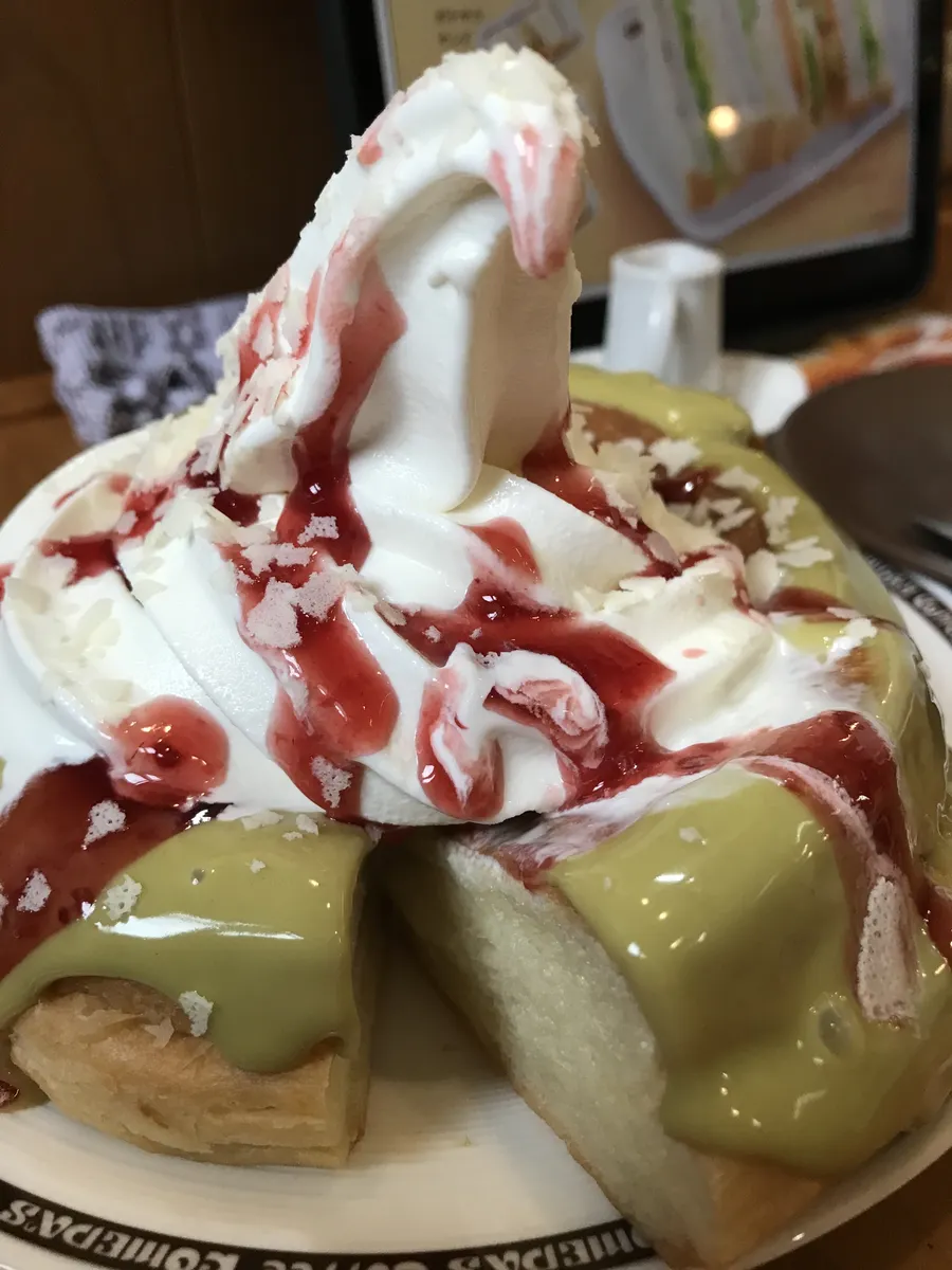 外はパリと中はジューシーで! あっ🤭うみゃ〜デザートは🎄シロノワール ピスタチオ・ルージュ