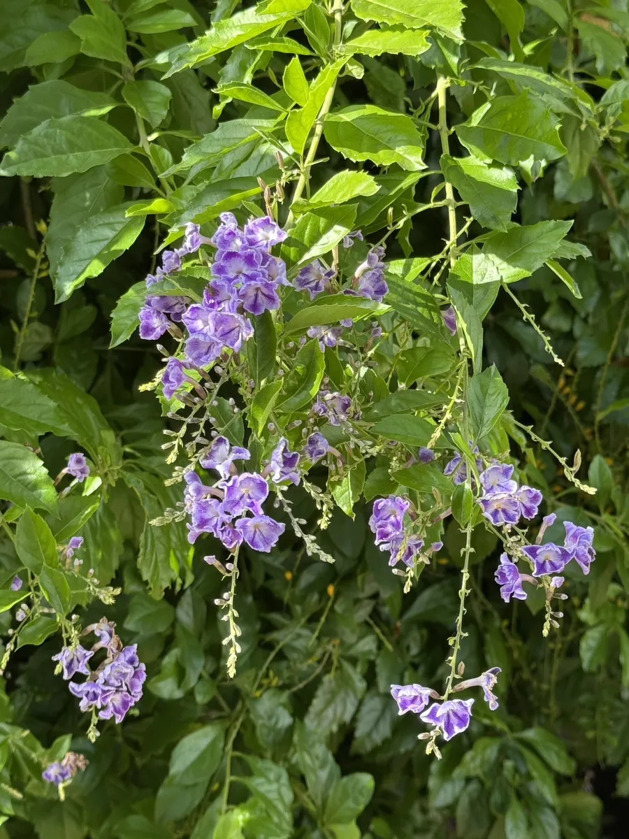 コメダ珈琲店に向かう道すがら、大きなケヤキの小さな公園でデュランタのお花がとても綺麗でした💜✨。