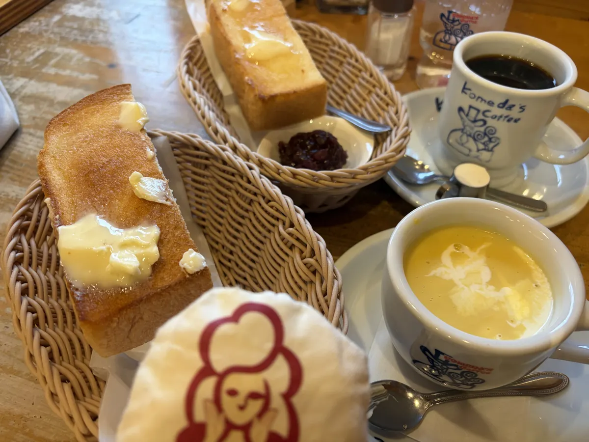 Wモーニングでコメダ納め、コーンスープもコメダブレンドも美味しそうです🥰