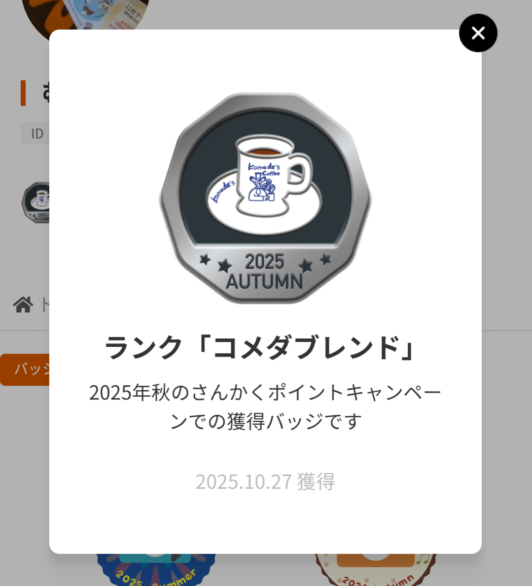 ㊗️さんかくポイントキャンペーン「コメダブレンド」ランクアップ⤴️バッジ獲得🏅おめでとうございま🎉🎉🎉