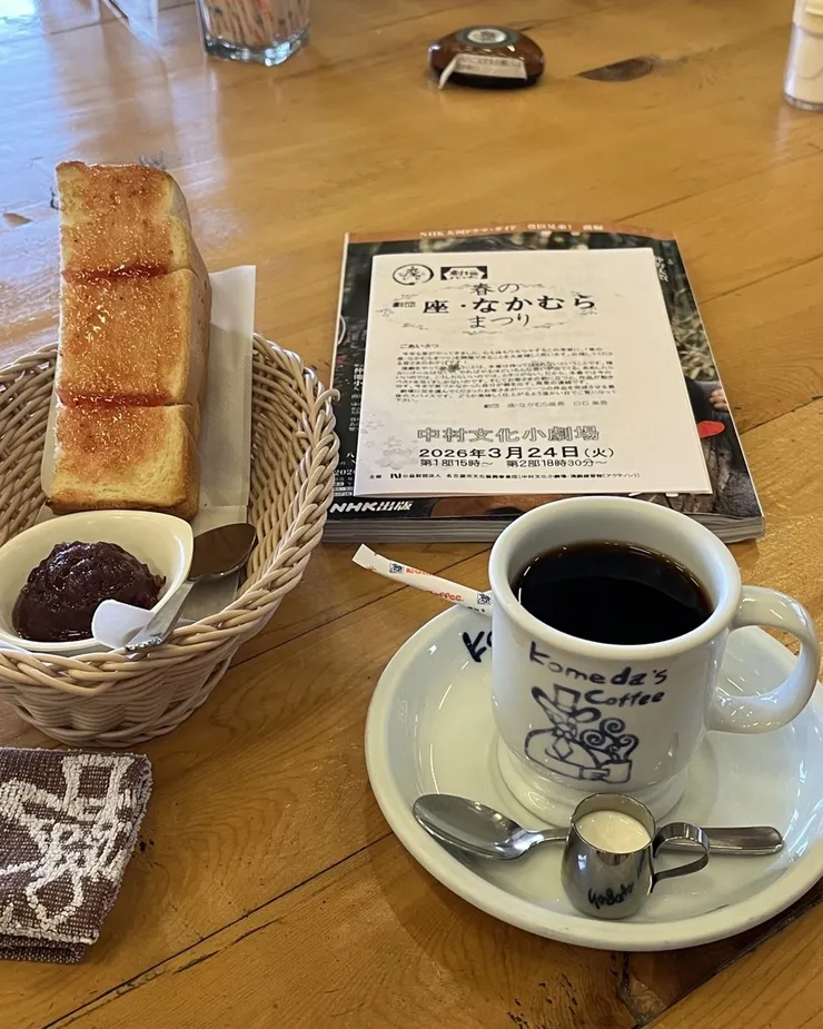 また別の日、前日の公演プログラムを持って同じコメダへ行きました。体調に耳を傾けてとびきり甘くしました。コメダは、パンがふわふわのところが大きいから、最後までくどくならずに食べられるのがうれしいです。