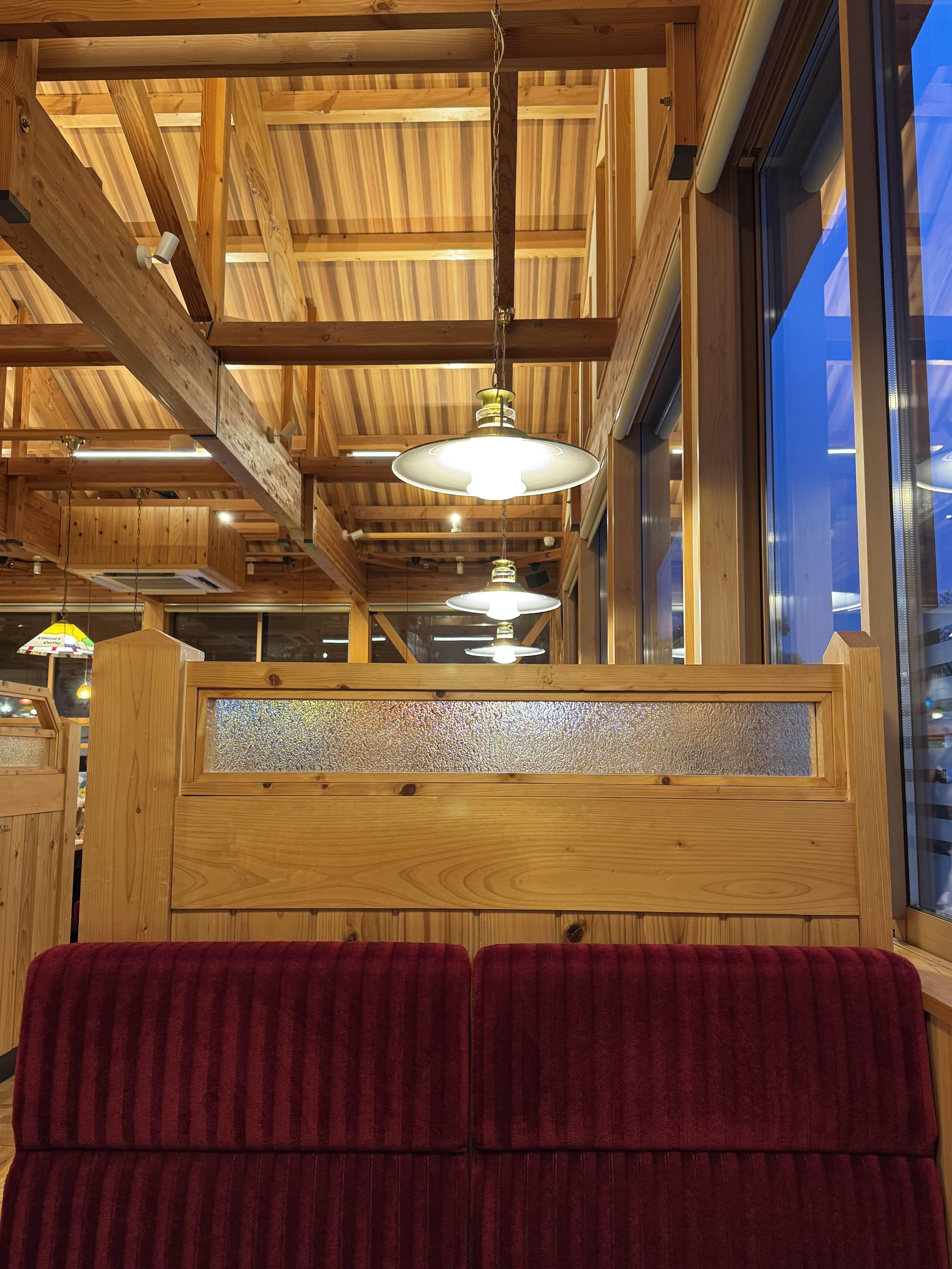 店内の中も綺麗ですし夜だからゆっくりくつろげて帰りたくない気持ち分かります。ムリしない程度に遠征してください😊