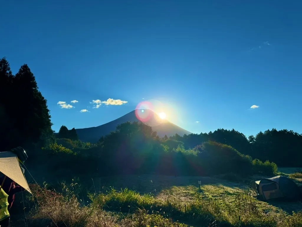 富士山の麓のキャンプ場だったので富士山と朝日を背景に撮ったのがトップ画です。