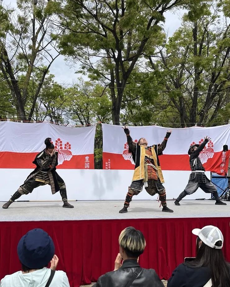 それでもお腹いっぱい楽しめるのが中村公園です。身体も、心もです。劇団座・なかむらとは一緒に歌って踊り、名古屋おもてなし武将隊の演舞は、みなとともに勝ち鬨と拍手で盛り上げました。ただ一人刀を持った太助の八面六臂の活躍が、まこと天晴れでした。