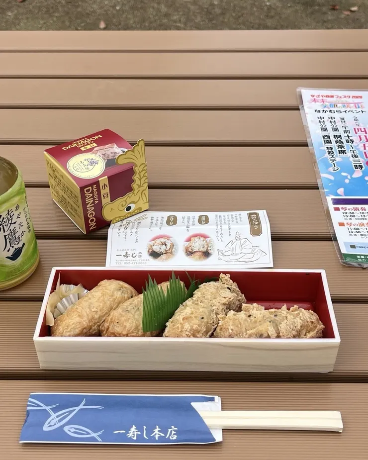 豊臣横丁では奮発していなり寿司を買いました。おいしかったです。世間話や席の譲り合いなど雰囲気もよく、心から楽しめました。