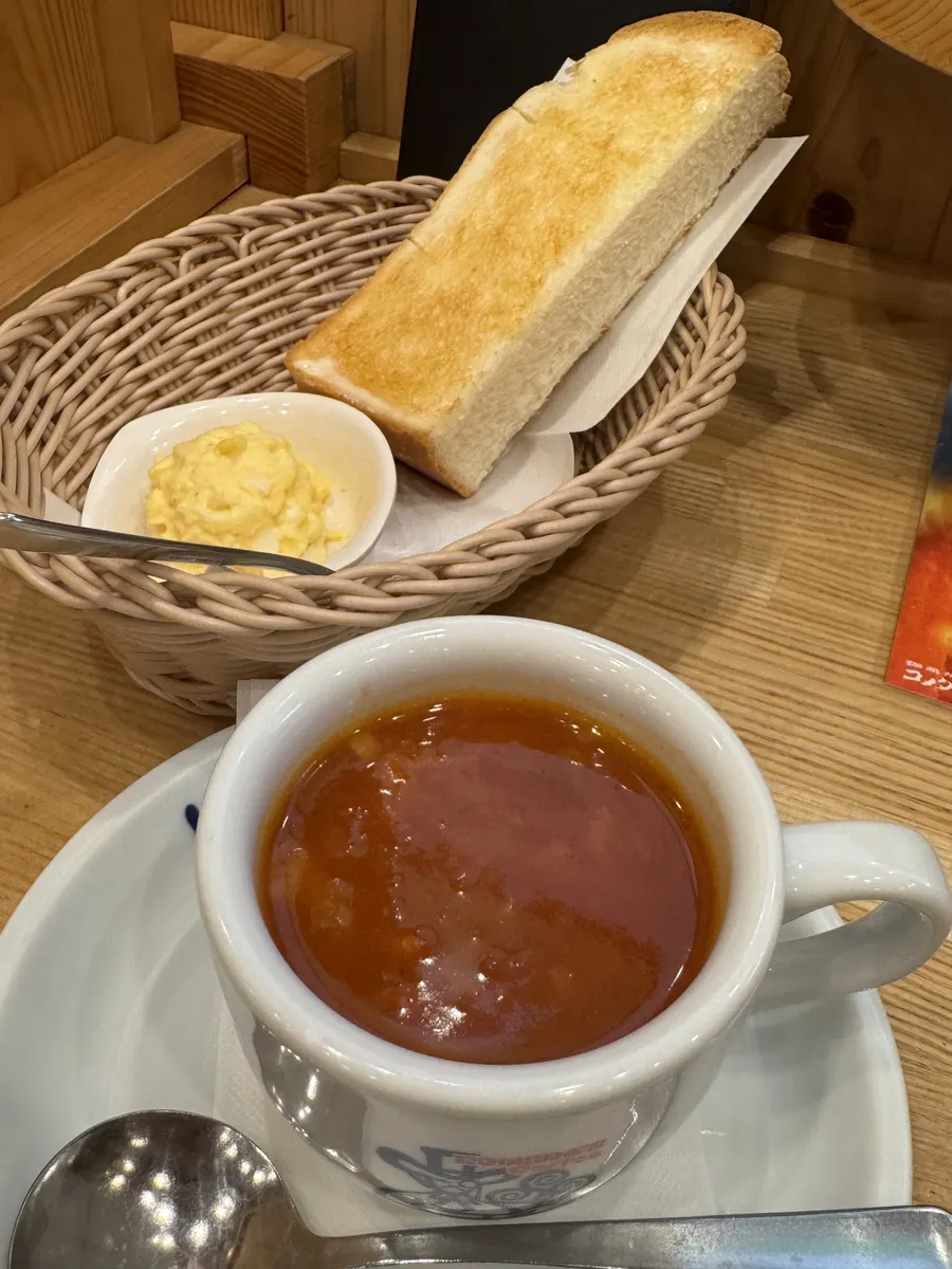 モーニングに続き、ランチのミネストローネとトースト🍞+たまごペースト🥚
