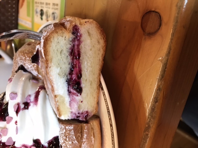 ブルーベリーとクリームチーズがサンドされてうまい😋😋ハート形の砂糖⁉️可愛いですね😊
