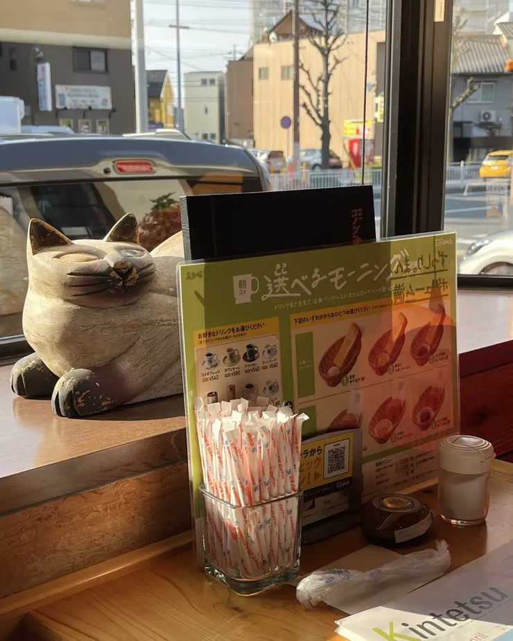 幸い先客はいませんでした。太陽を目指すようにその席へ座りました。猫の置物とにらめっこみたいになりました。明るい席で食べるふわふわパンが、すごくおいしかったです。