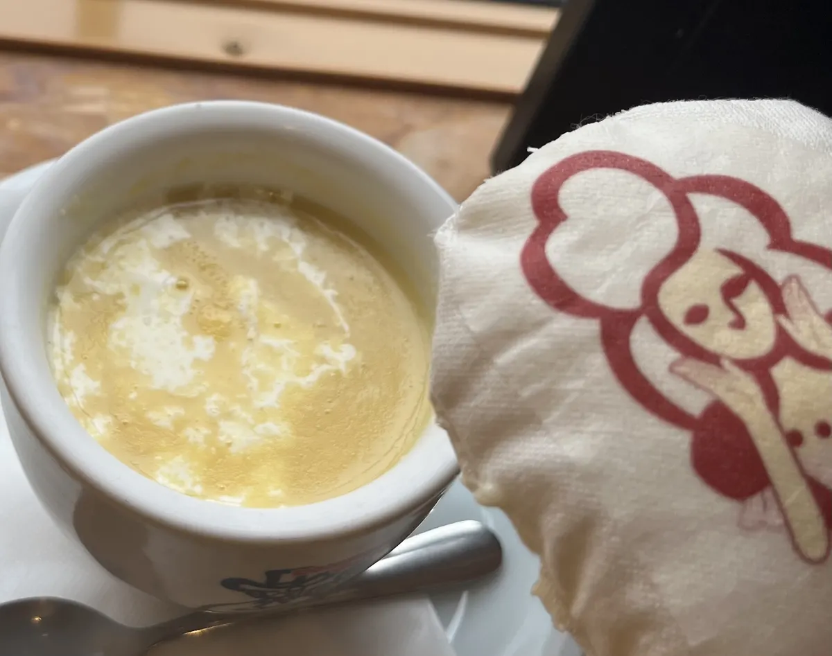 モバイルオーダーになってから、①と④のゆで卵には豆皿が付かなくなったので、バター多めの時はカゴと紙ナプキンにバターがべったり染み込んで、紙ナプキンにバターを食べられたみたいになることが多かったです😭