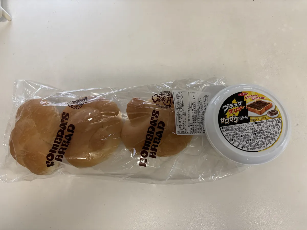 結びパンとブラックサンダーザクザククリーム。