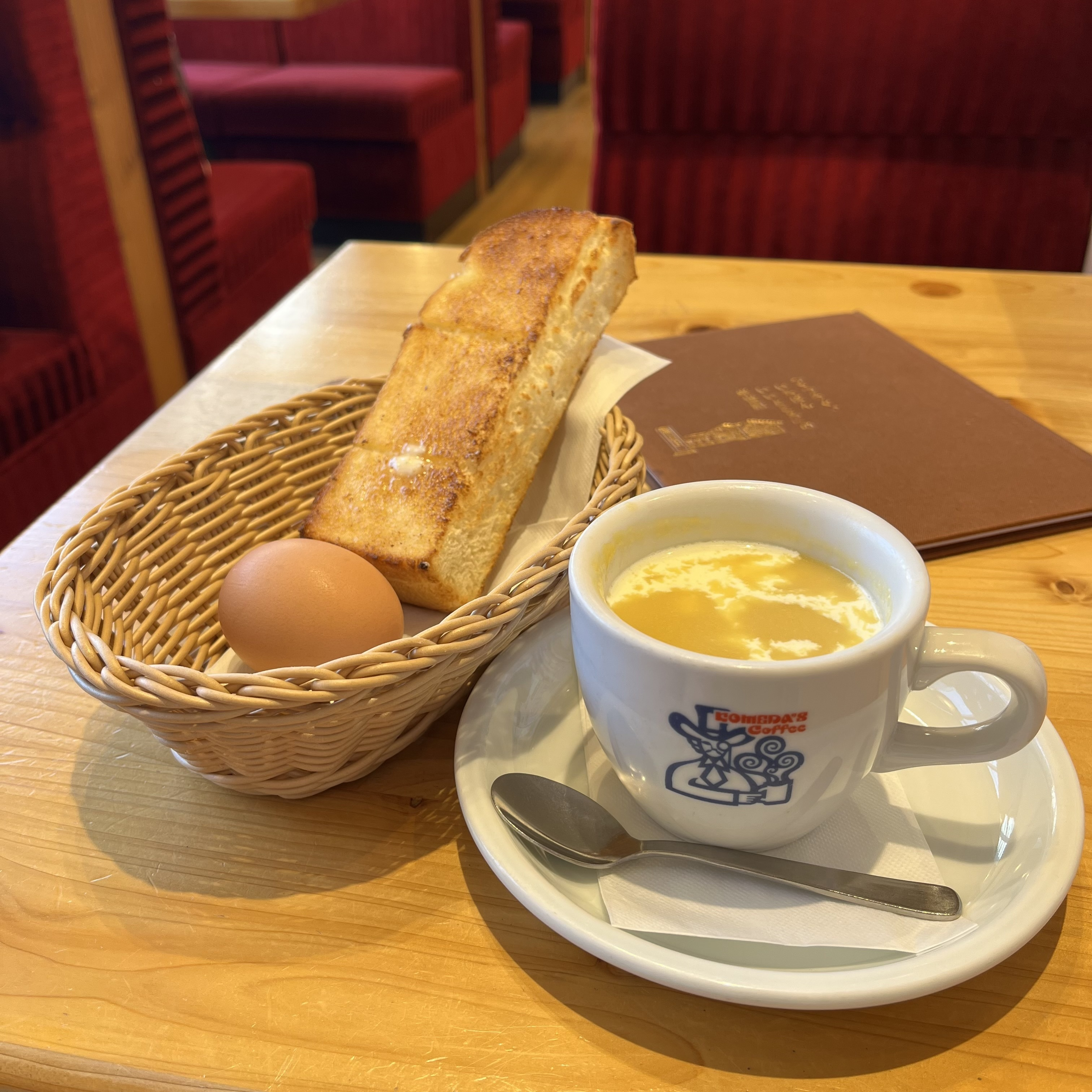 ・コーンスープ🌽よく焼き①赤玉ゆで卵🥚モーニング