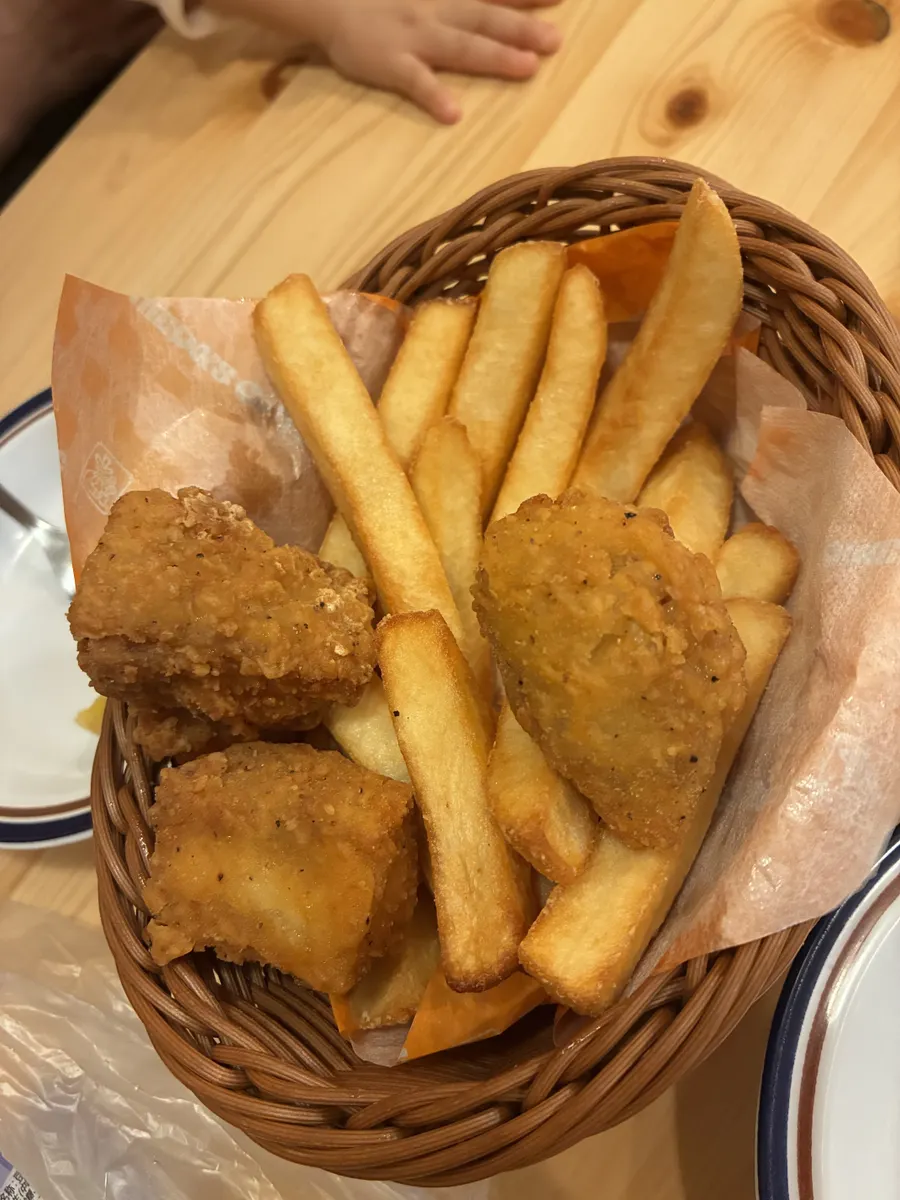 たっぷりたまごのピザトーストとポテチキも美味しそう❣️しかもコメチキ大きいですね😍❣️❣️❣️