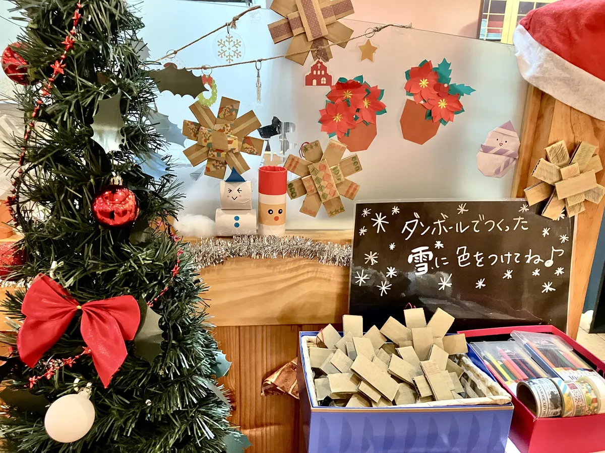 段ボールを活用し、お客様にデコレーションしていただきカラフルな雪の結晶を作り冬の彩をそえました。