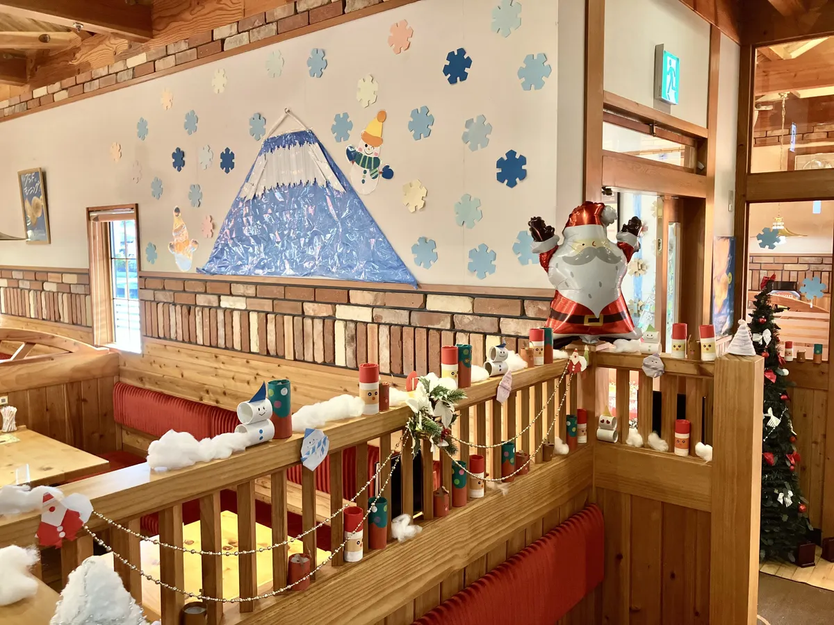 可愛らしいサンタやもみの木、雪だるまやトナカイはトイレットペーパーの芯を利用して作り、梱包材と使われなかったストローで富士山の雪化粧を作り、静岡の冬の風景をあたたかな店内でくつろぎながらお楽しみいただけるようにしました。入口近くで装飾の写真を撮られるお客様や「段ボールの雪かわいい!」と声をかけてくださるお客様もいらっしゃり、お客様の笑顔と喜びが私たちにとって何よりのクリスマスプレゼントです。