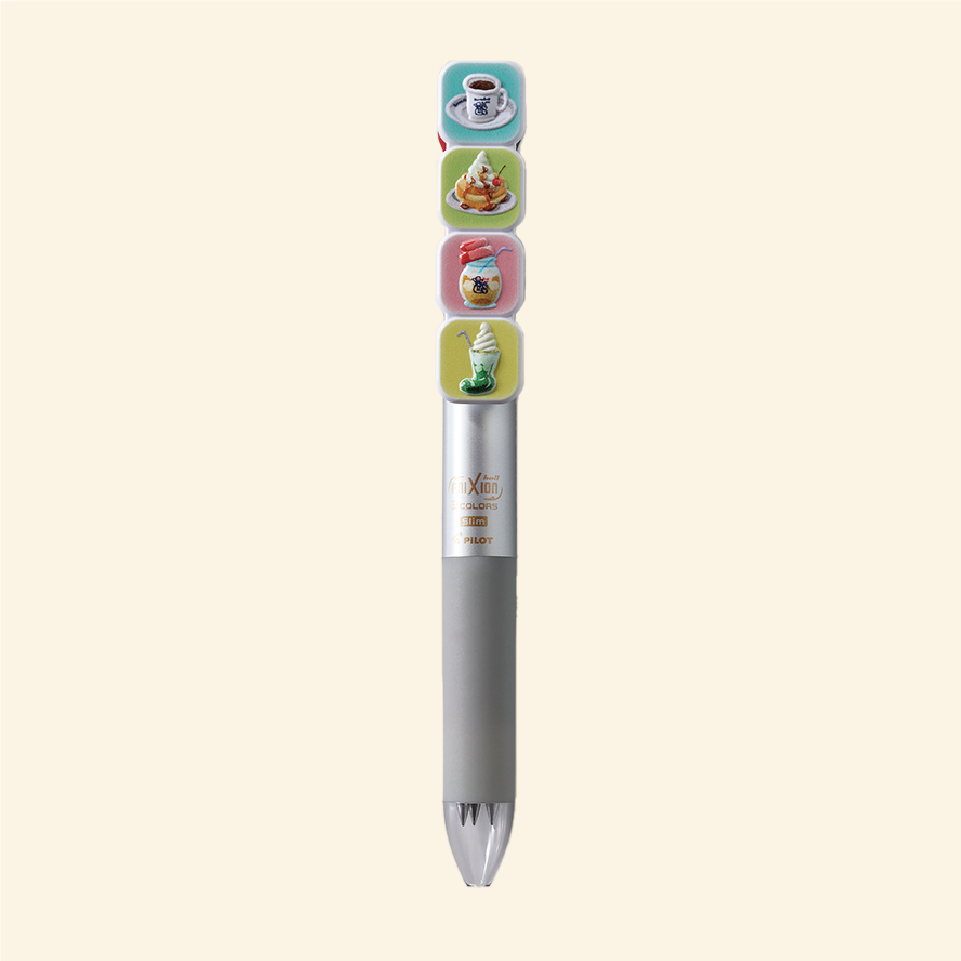 コメダ珈琲店Ver.にはコメダブレンド、シロノワール、サマージュース、クリームソーダが載っていて、ペンの本体はグレーで大人っぽいのが素敵♪
