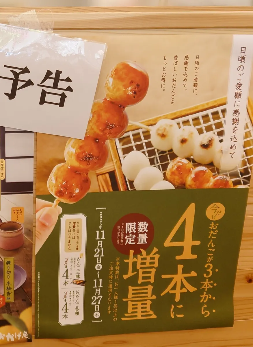 投稿を表示お団子、3つが4つは凄いお得😉❗