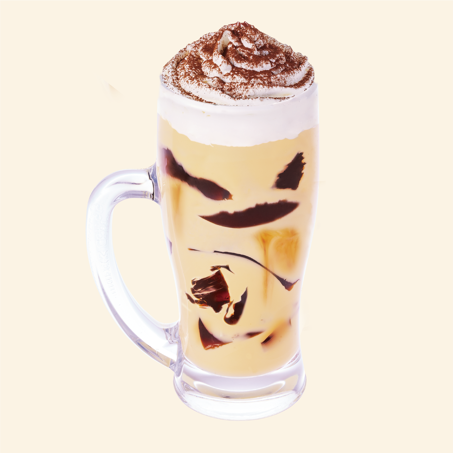 マスカルポーネのコクとプリンのやさしい甘みが楽しめるティラミスプリンドリンクに、ほろ苦いコーヒージェリーとコーヒーシロップを組み合わせ、仕上げにホイップクリームと、ココアパウダーでデコレーションしました。よく混ぜてからお召し上がりください♪