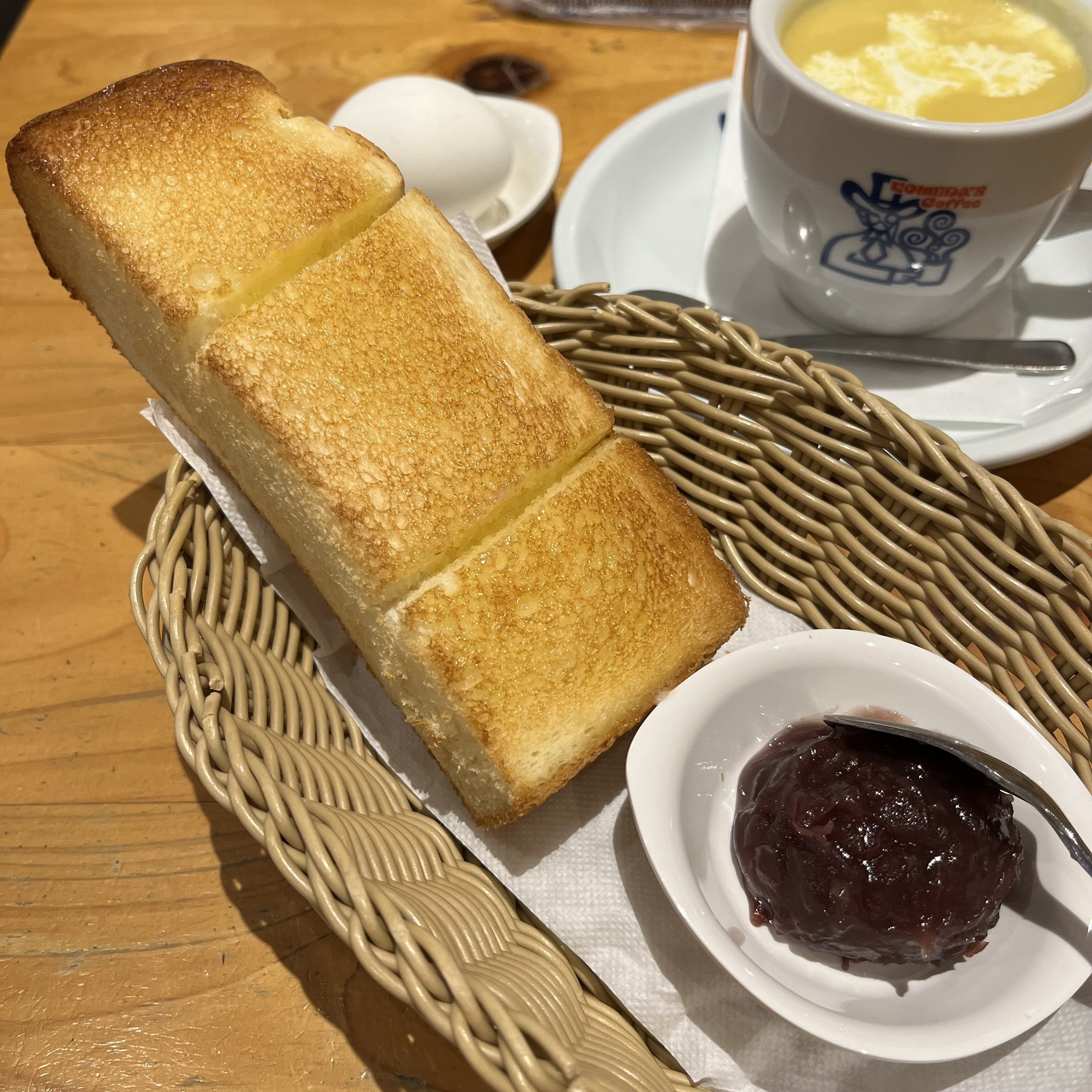 コーンスープ🌽よく焼きトースト🍞③モーニング+ゆで卵追加🥚とっても美味しそうです😍