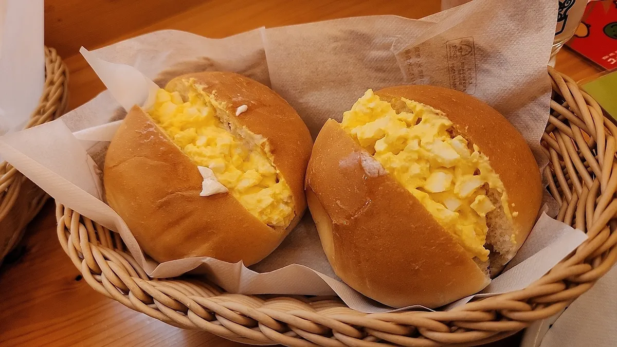 ローブパンに塗る豆乳にタマゴペーストたっぷり挟んだですね。