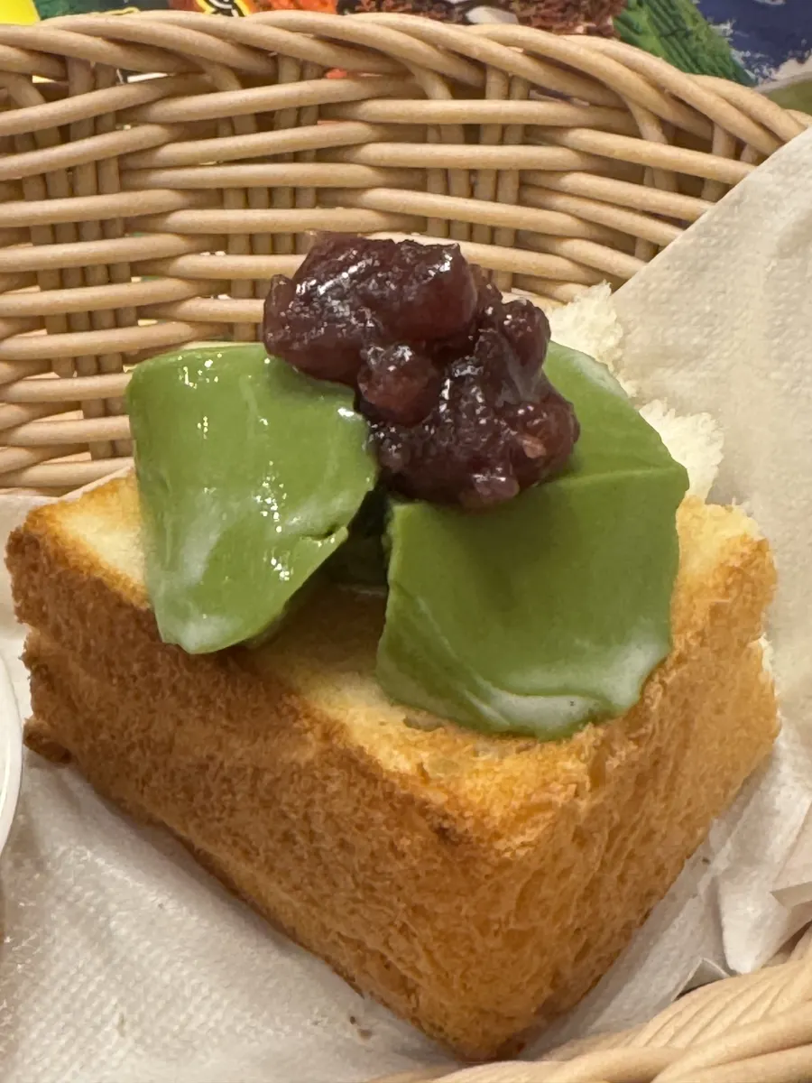 トーストに宇治抹茶プリン🍮と小倉あんをオンして、和風デザートトースト🍞の完成とは、素晴らしいアイデアですね😍