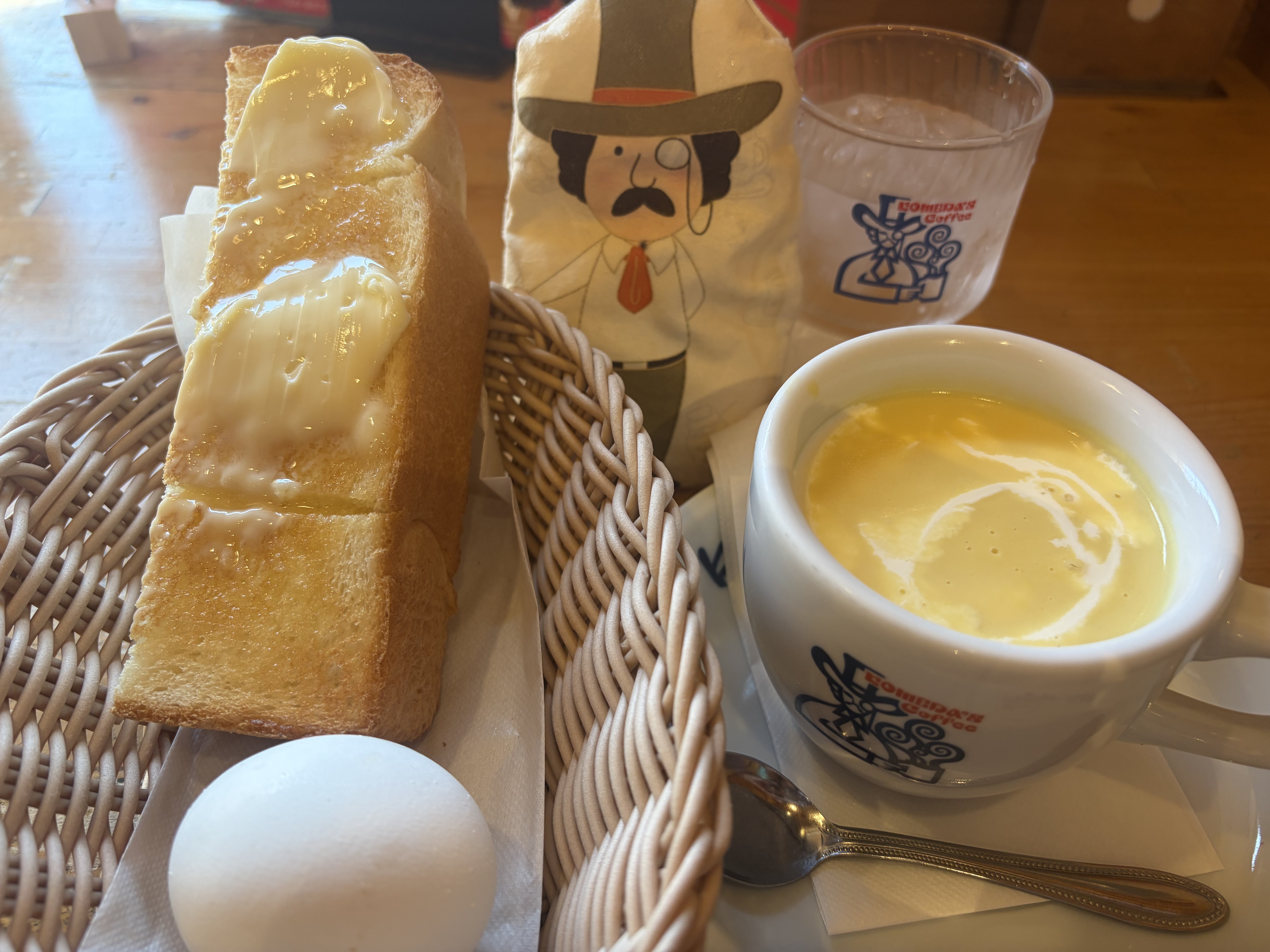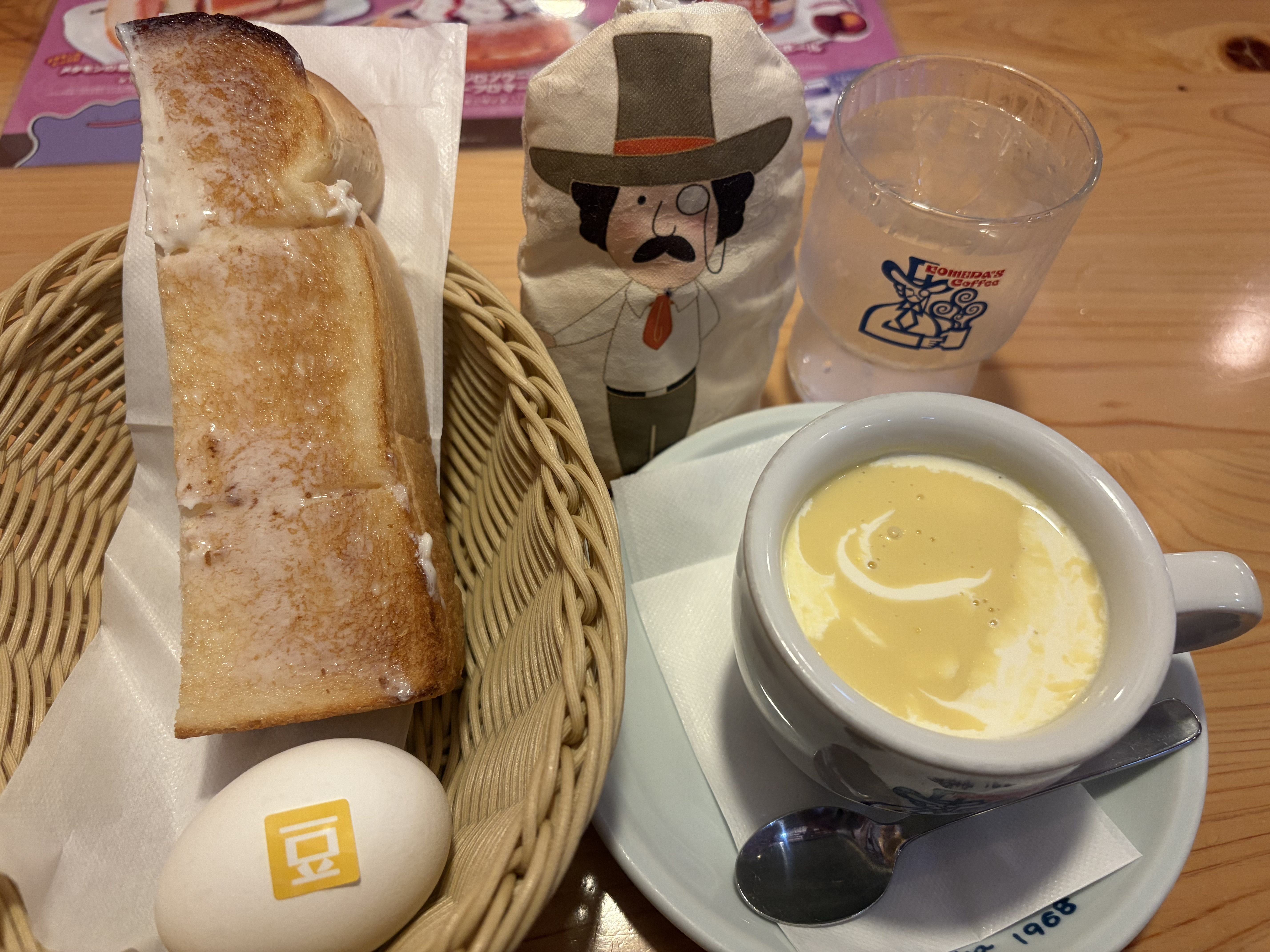 ぬる豆乳の1番モーニングとゆでたまご🥚、美味しそうです〜❤️。