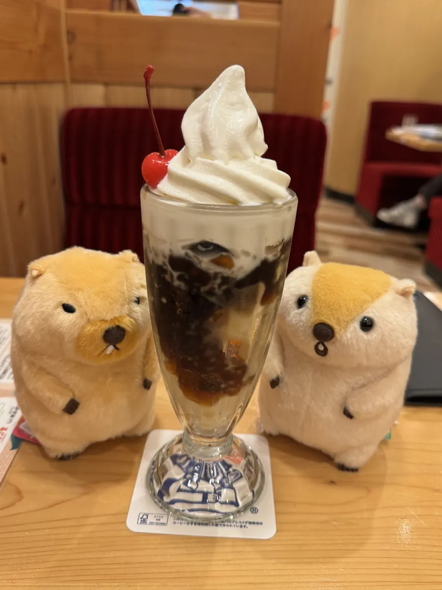 フードファイターのマーモットさん達と取りっこしながらの珈琲ジェリー、とても美味しかったです❤️。