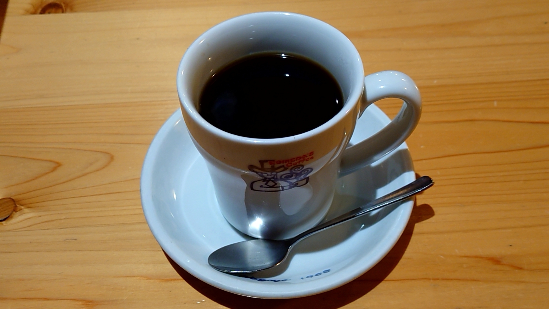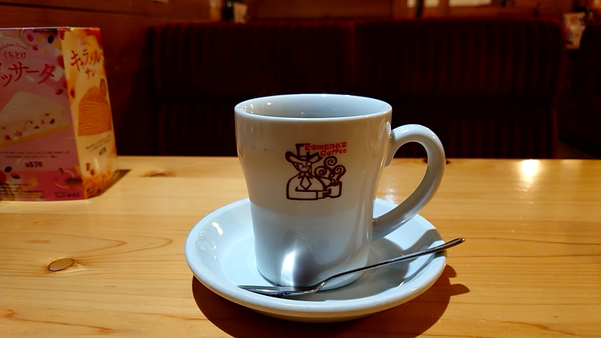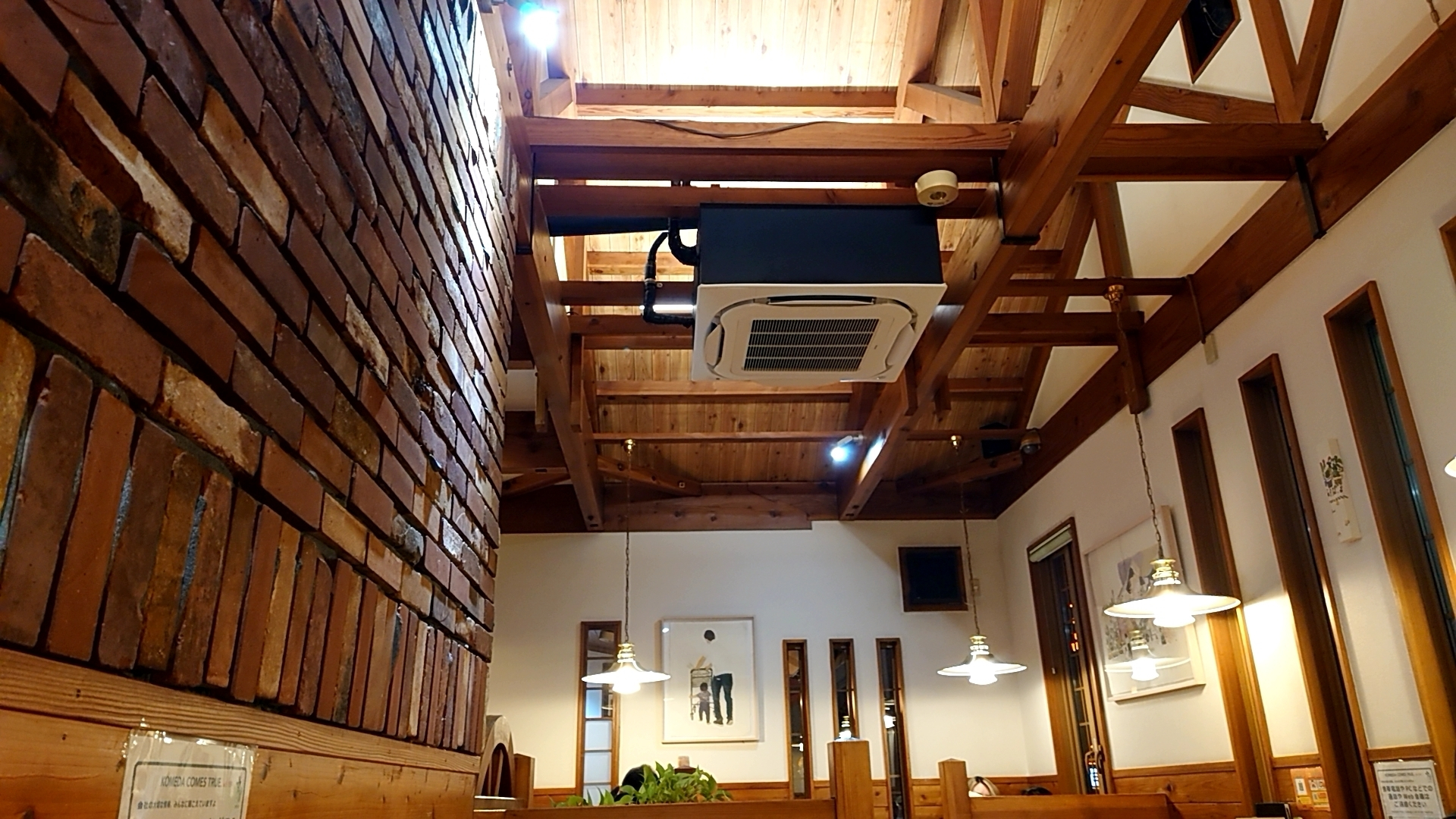 日置橋店の入ロ入って左側の一番奥から見るさんかく屋根の内側と🧱壁がコメダらしく落ち着ける場所(🪑)です