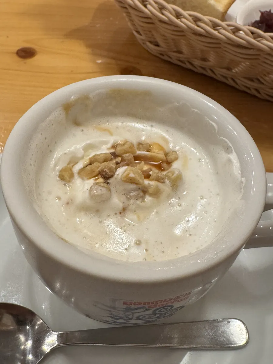 朝から甘〜い…そして温かい飲み物☕️🎶🎶、あとのせくるみのトッピング❗️美味しそうですね😊💕