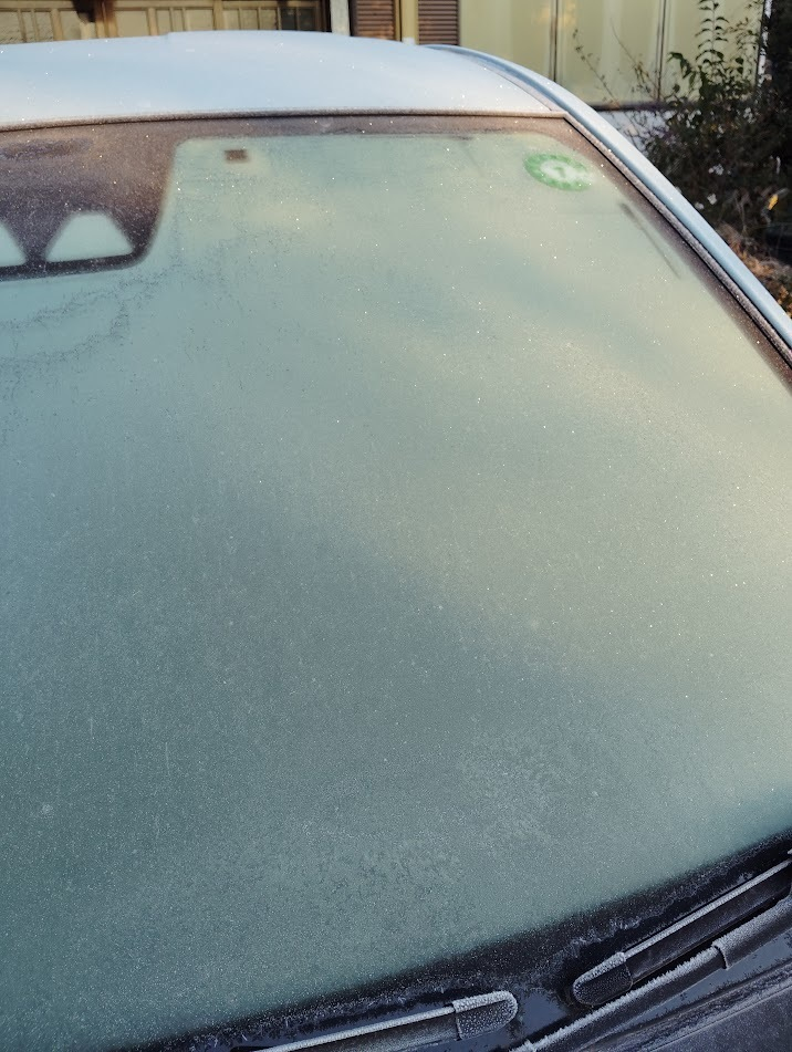 朝、コメダさんに向かおうと思ったら、車のフロントガラスが大変なことに....