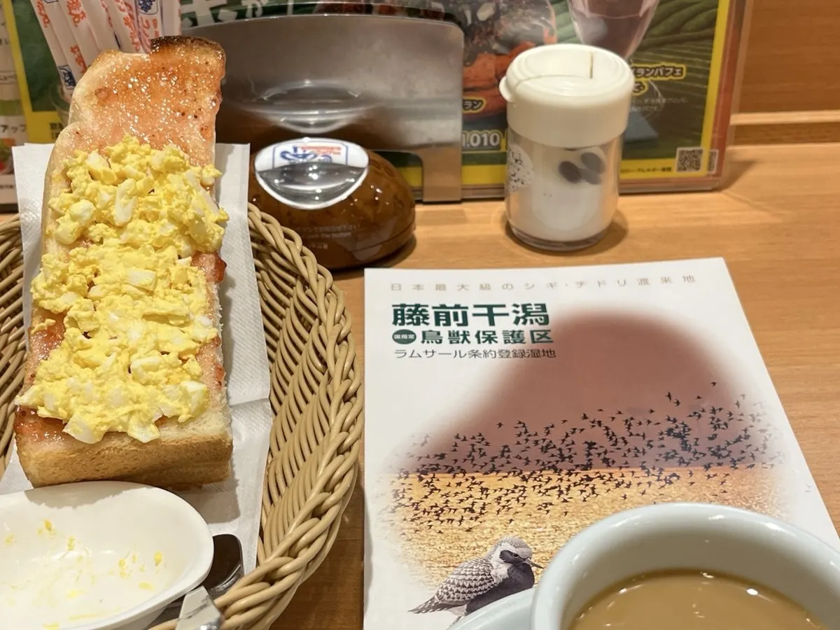 いちごをいちごだけで楽しんだら、たまご多めにしたあと二つをもっと勢いよく食べました。おいしかったです。元気が出ました。これから行く干潟で、鳥たちはどんな食事をしているだろうと想像が膨らみました。