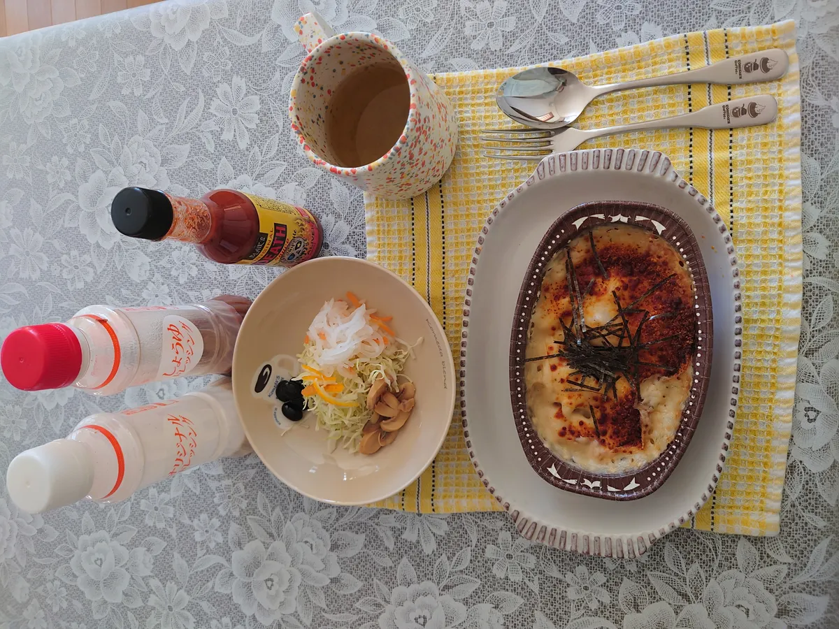 トップ > コメダ写真館 > あ…お昼。早い… みいこ 2026/01/09 13:07 あ…お昼。早い… 今日は福袋が届いたので早速お皿とカトラリーを使用。 冷凍食品のグラタンには、刻み海苔を乗せ新しいお皿には、黒豆と野菜をちょこっと盛り付け上に柚子を乗せ昨日開けた缶入りマッシュルームを添えてみました。 最近お昼の時間が遅い事が多いので、今年は改めないと… 今年は良い年にしたいですね。 いいね 共有する 共有する X facebook LINE リンクをコピー コメントする 0 件の返信 (新着順)