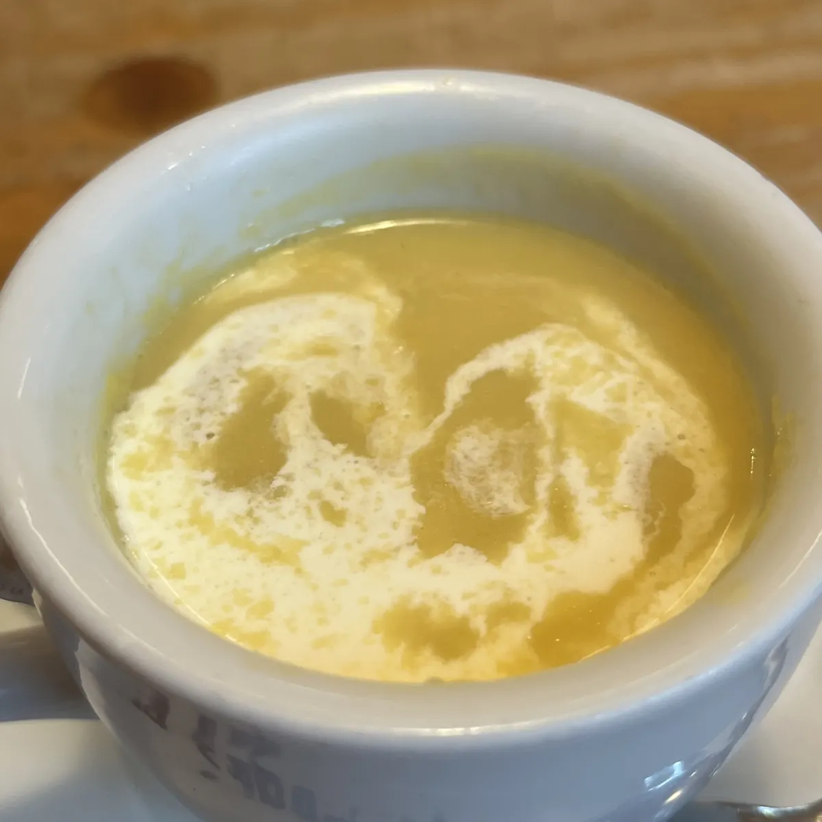 コーンスープ…妊娠中のエコー写真に見えてしまいました💦💦胎児👶🏼がいる🤭