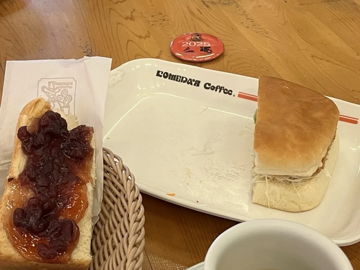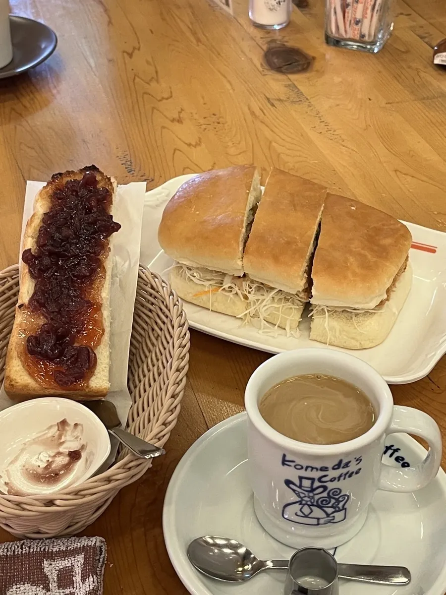 その喜びに釣り合うのは、この間、ここぞというとき何度も助けられたカツパンのなかでも、エビカツしかないと——どこよりもくつろげる場所で、お気に入りの席で、気兼ねしないひとたちに囲まれて、朝からこれ以上望みようのない最高のお祝いができました。