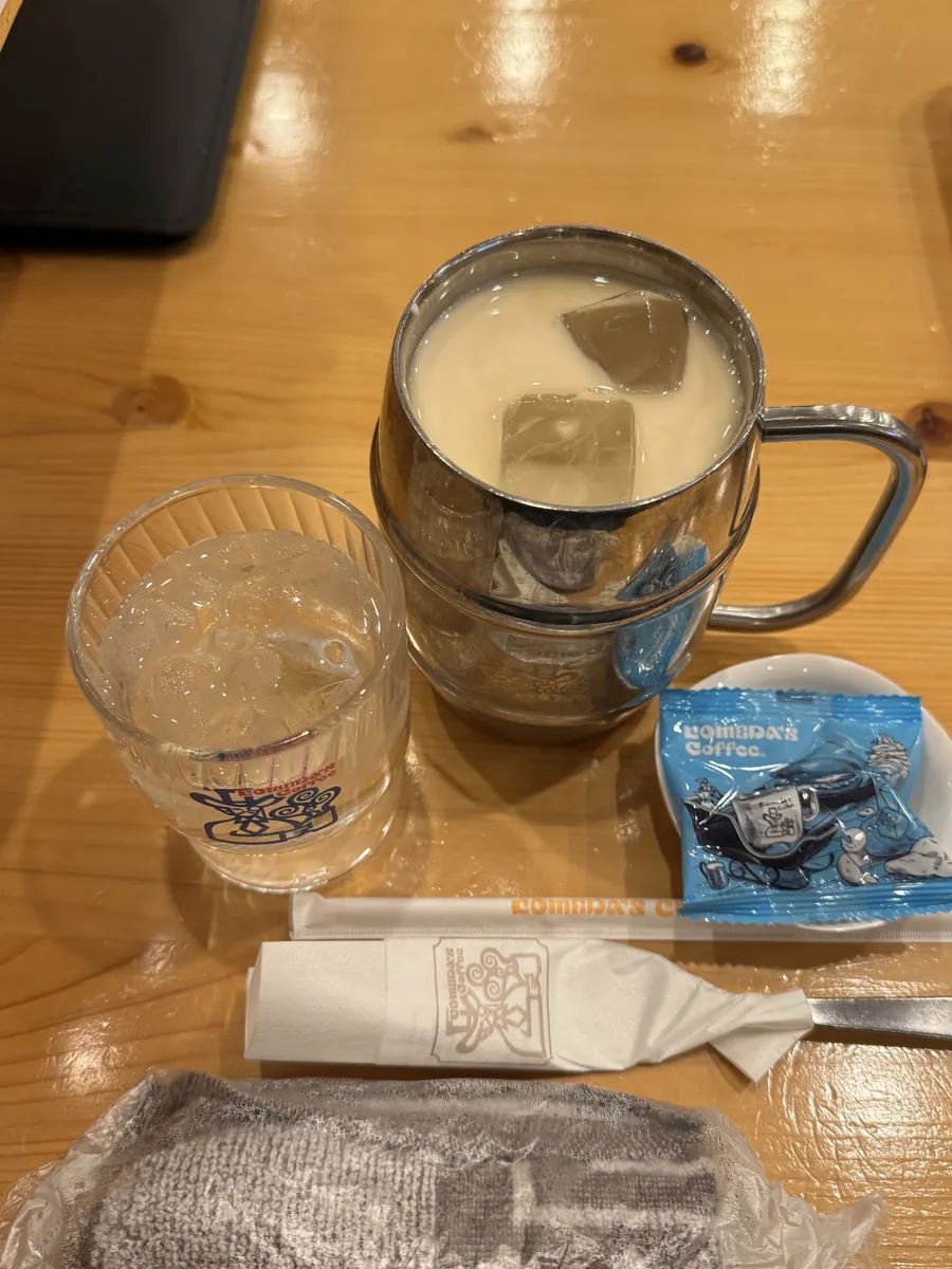 社食のアイスコーヒーを飲みながら、すでに美味しい思い出となったコメダ珈琲店と鎌倉紅谷のコラボを思い出しながらおやつをいただいています💖✨。