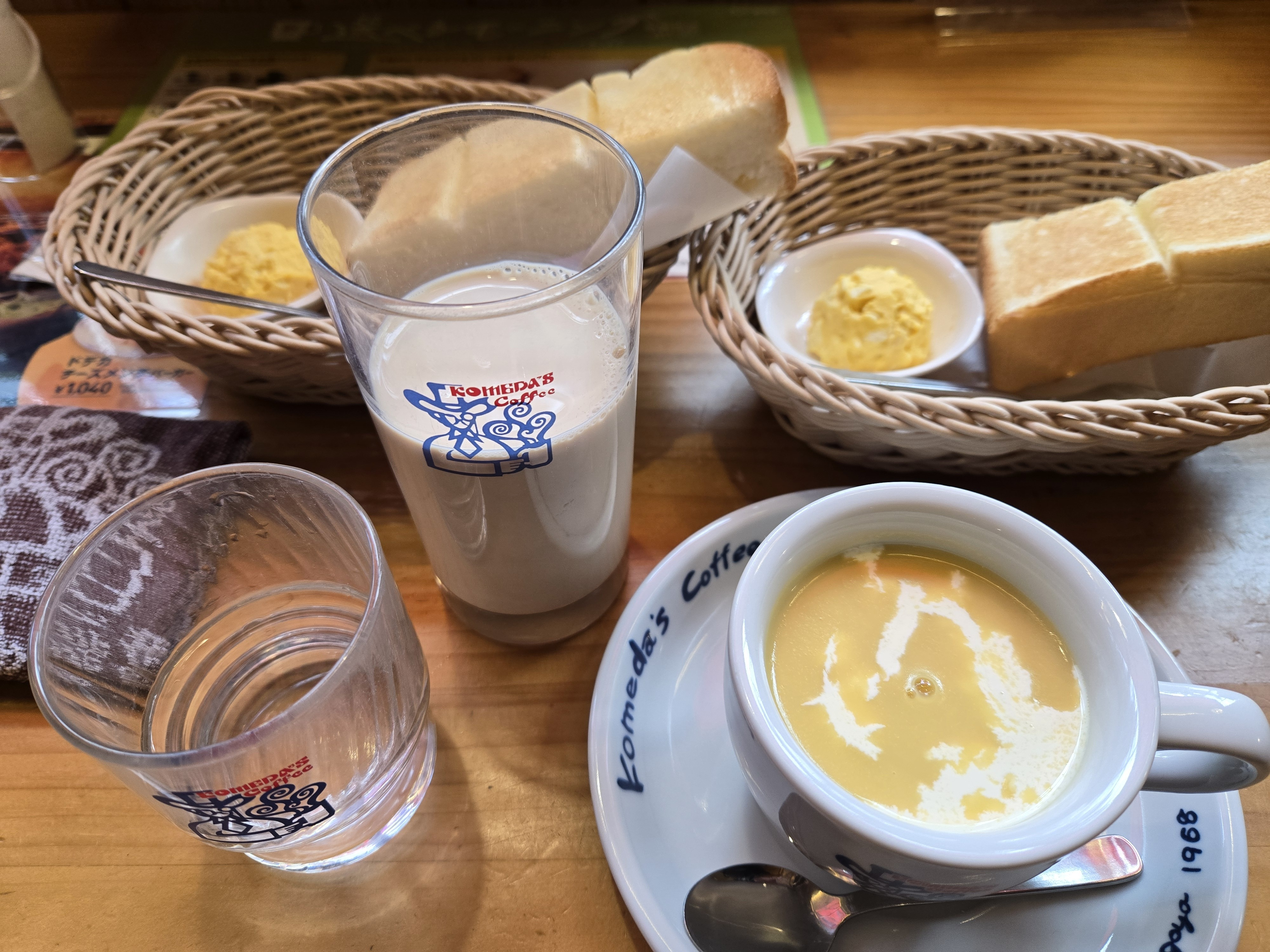 コーンスープ&アイスミルクコーヒーのWモーニング、美味しそうですね🎶