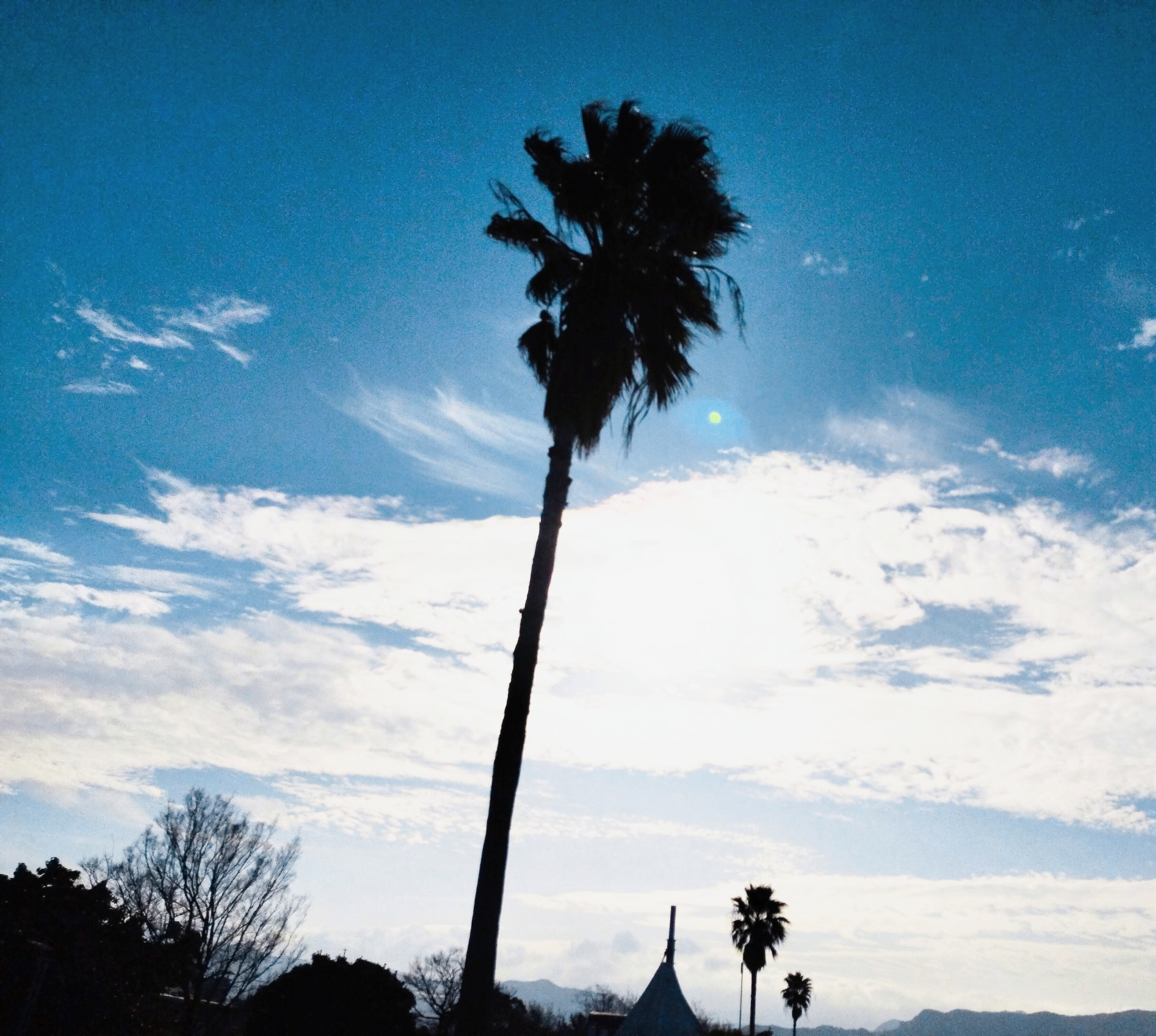 ヤシの木がシルエットだと空の青さと白い雲が引き立ってとても素敵に見えますね🏝️