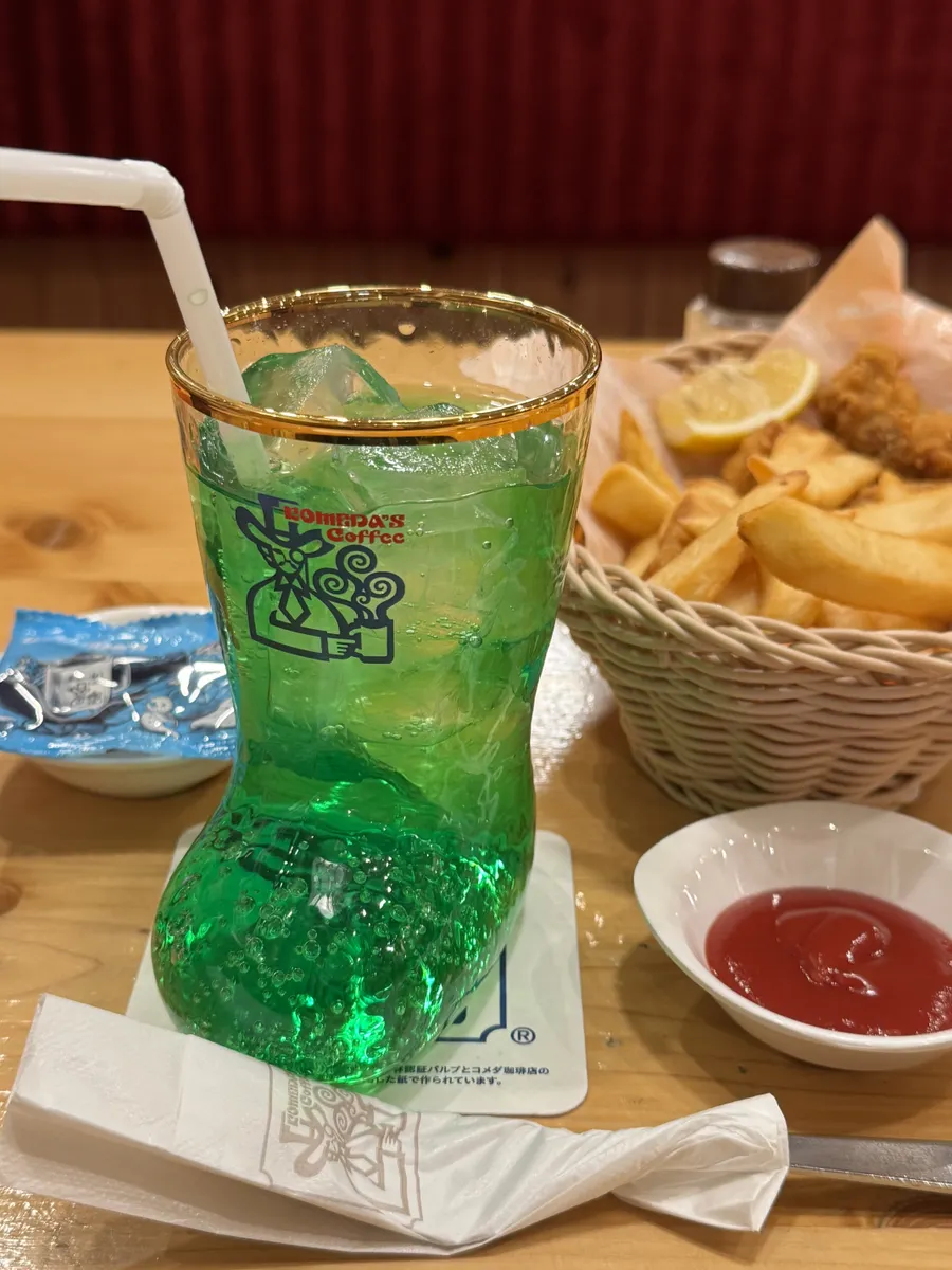 どうしてもクリームソーダを注文しがちなので、メロンソーダ単体の注文は自分ではしないですよね🥰