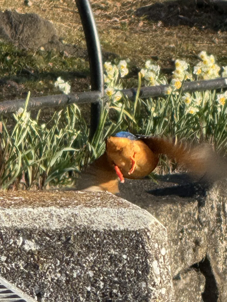 カワセミに出会えるなんて、すごいですね。可愛いですね。家の近くの川にも来るみたいですが、出会えたことが無いです。