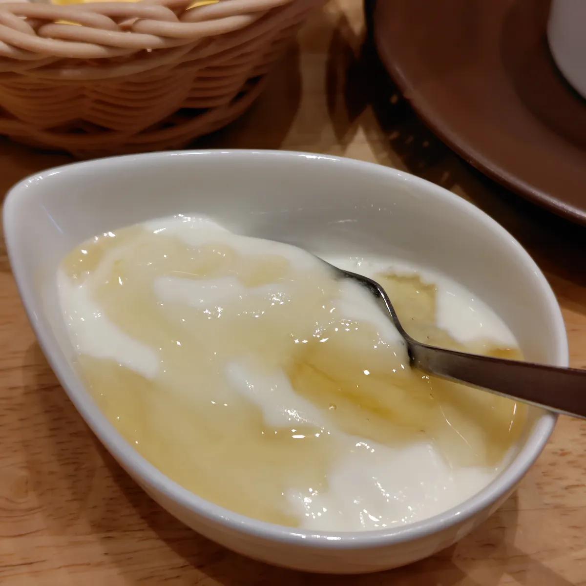 ヨーグルトは、、卵をもつ恐竜🦖さんが見えました🤭💕