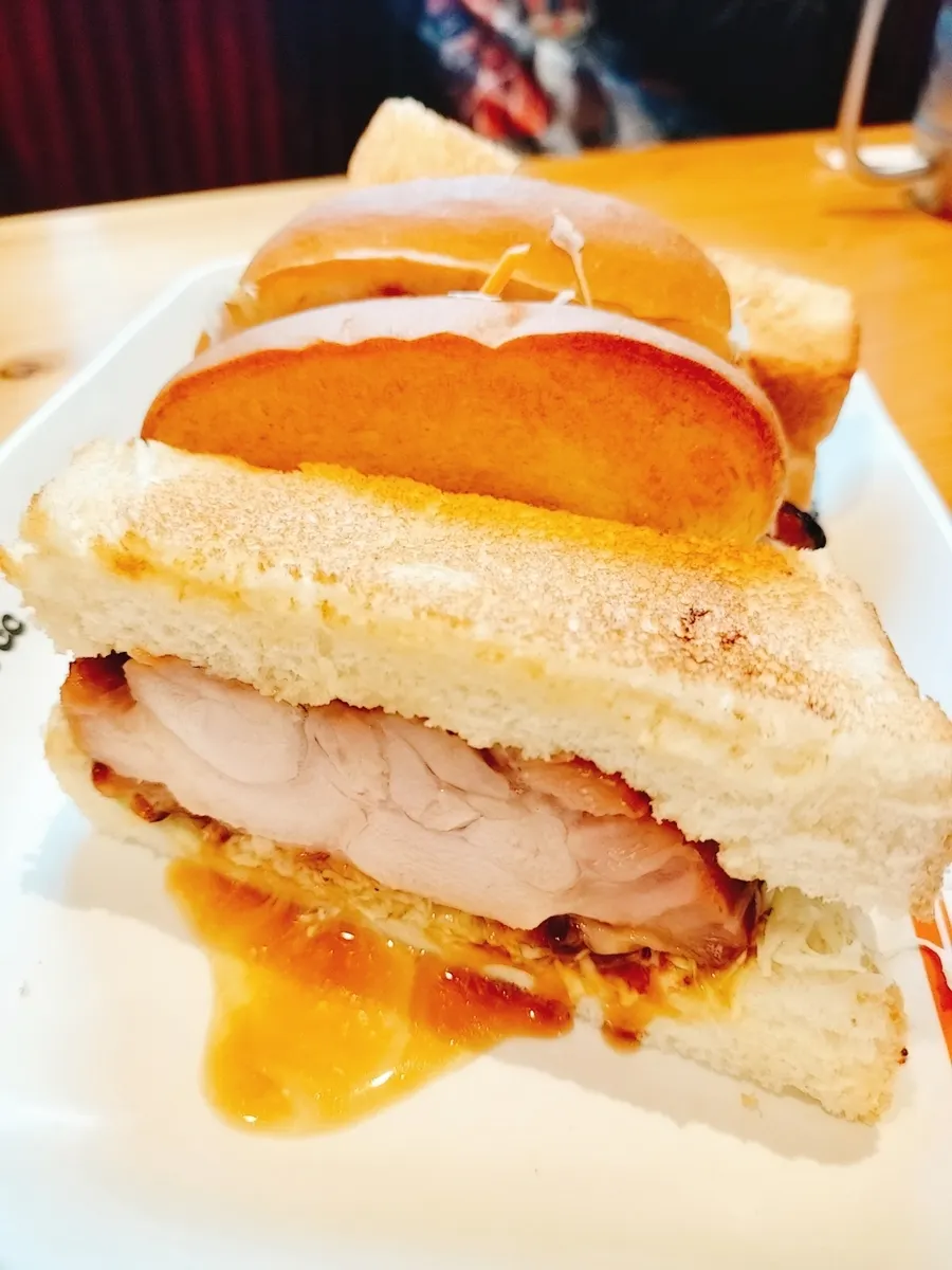 あみ焼きチキンホットサンドの肉汁が😍