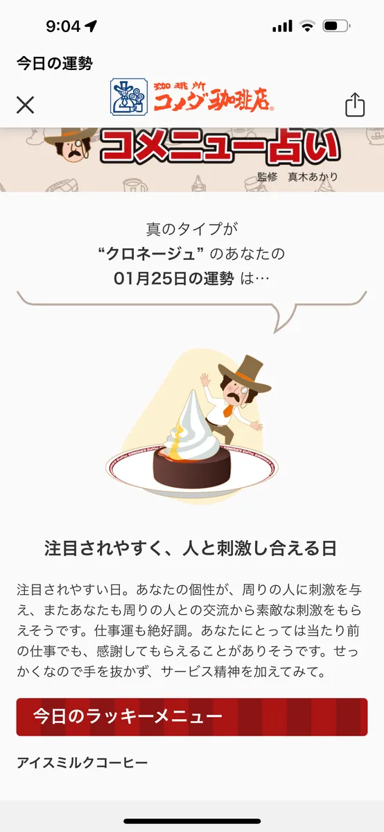 今日のコメニュー占い🔮は仕事の日じゃ無いから当てはまらないけれど、『せっかくなので手を抜かず』ひたすらコメダ珈琲店の前でサービス精神たっぷりに待ち続けた事だけは胸を張って誇れる一日でした🥰。