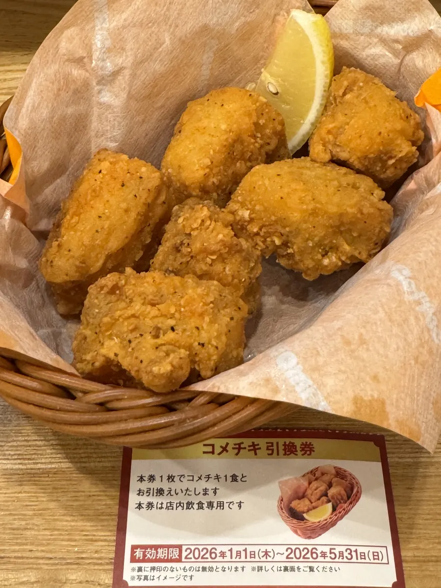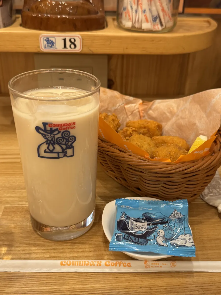 アイスミルクコーヒーとコメチキです。