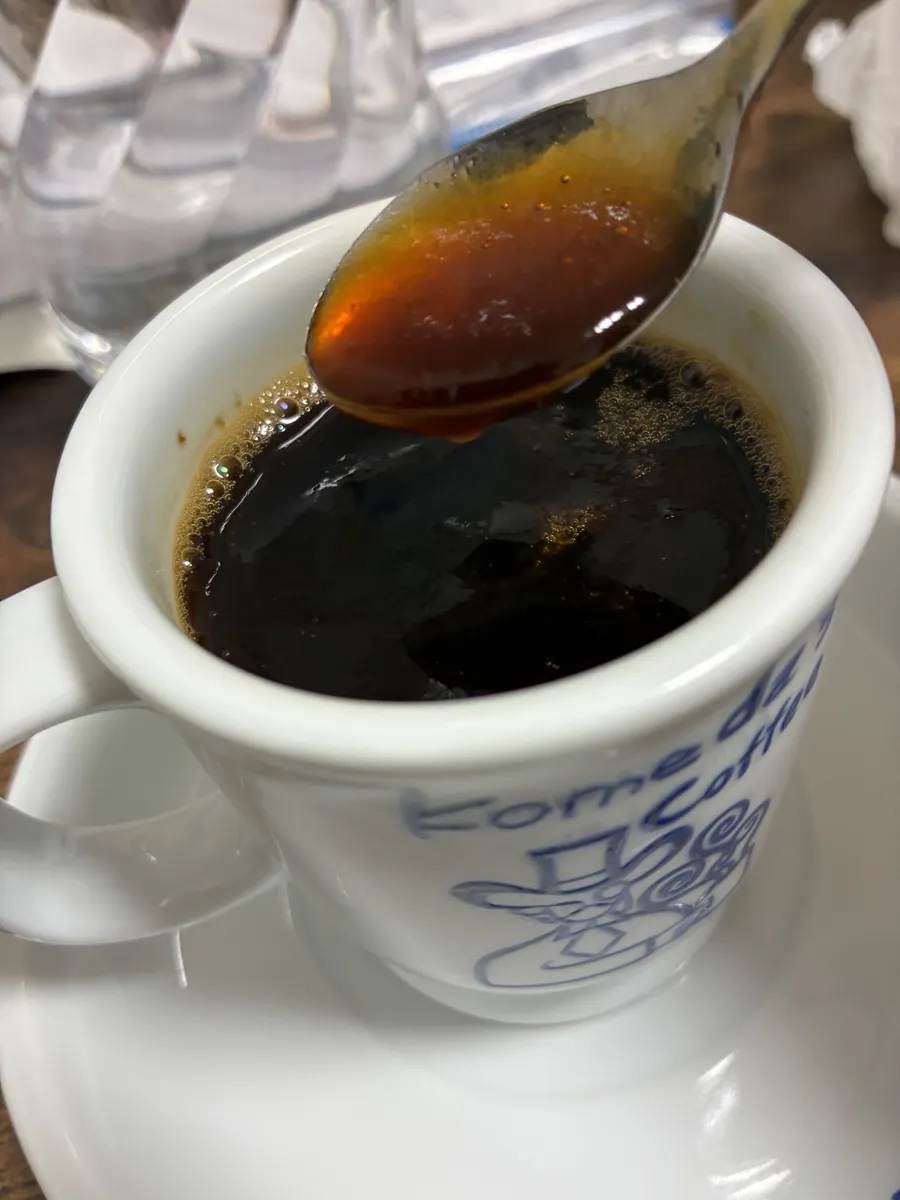 味の薄いコーヒーゼリーをぐずぐずに崩してあったかくした感じ?に似てるかもしれません??