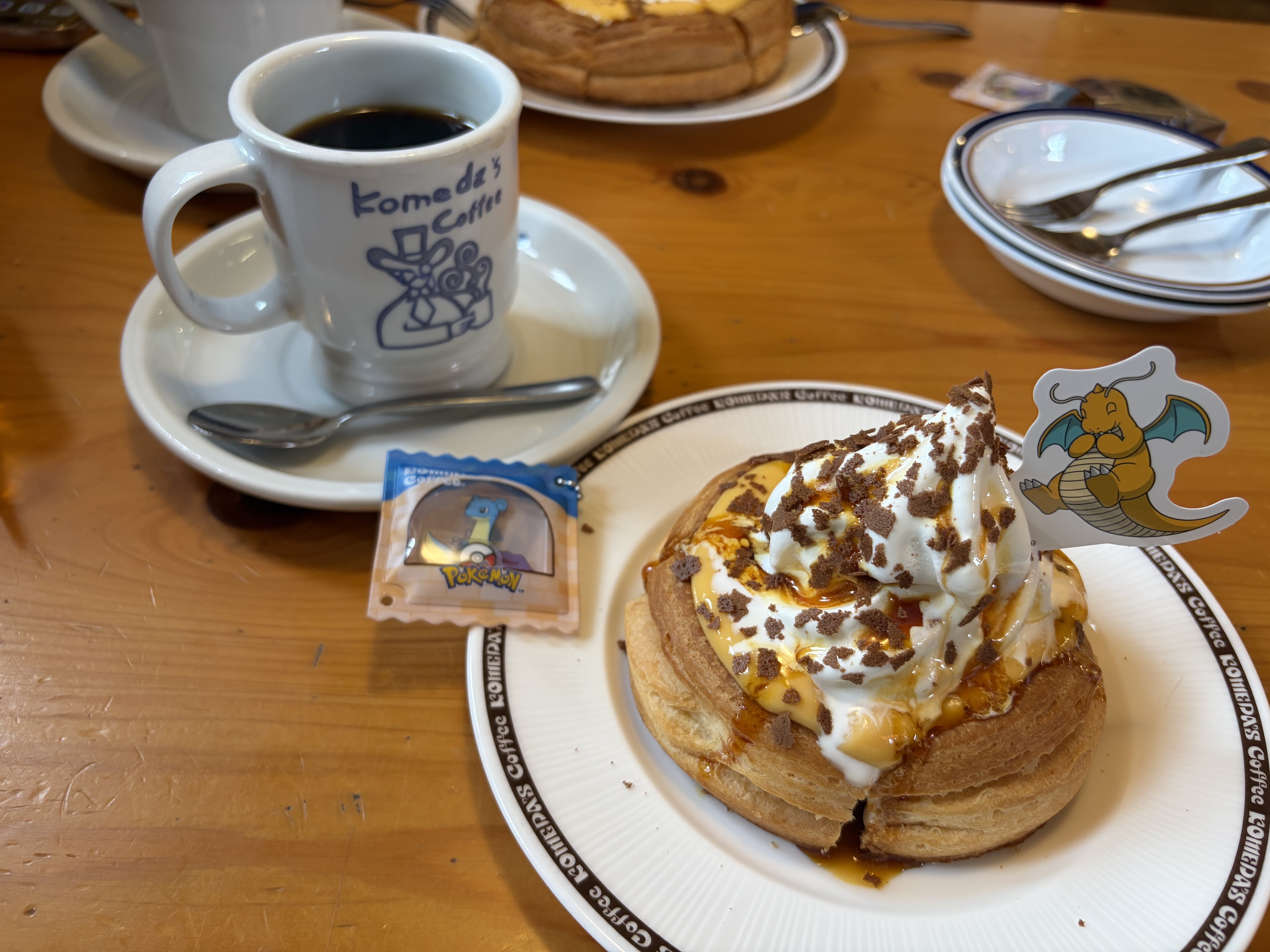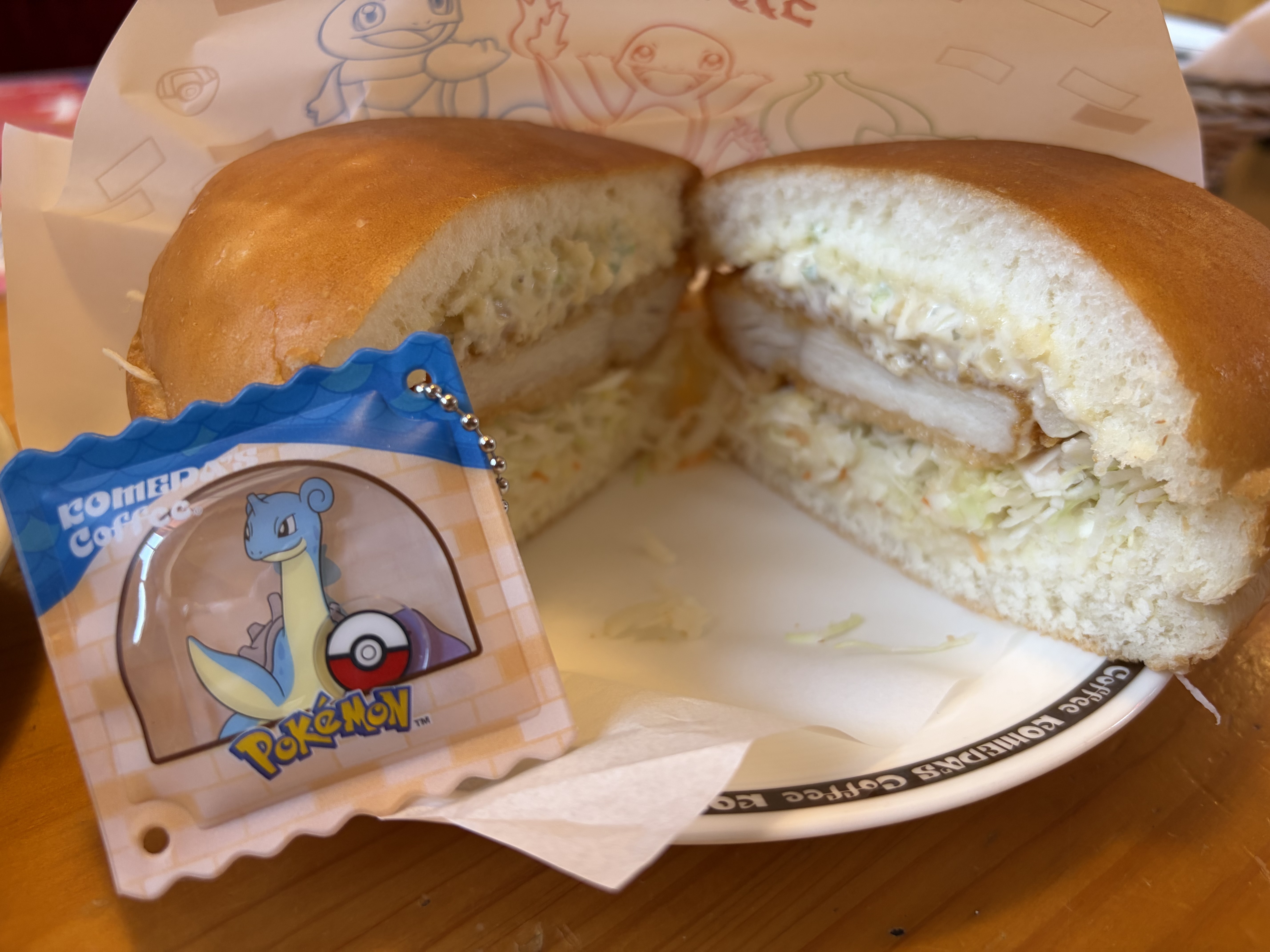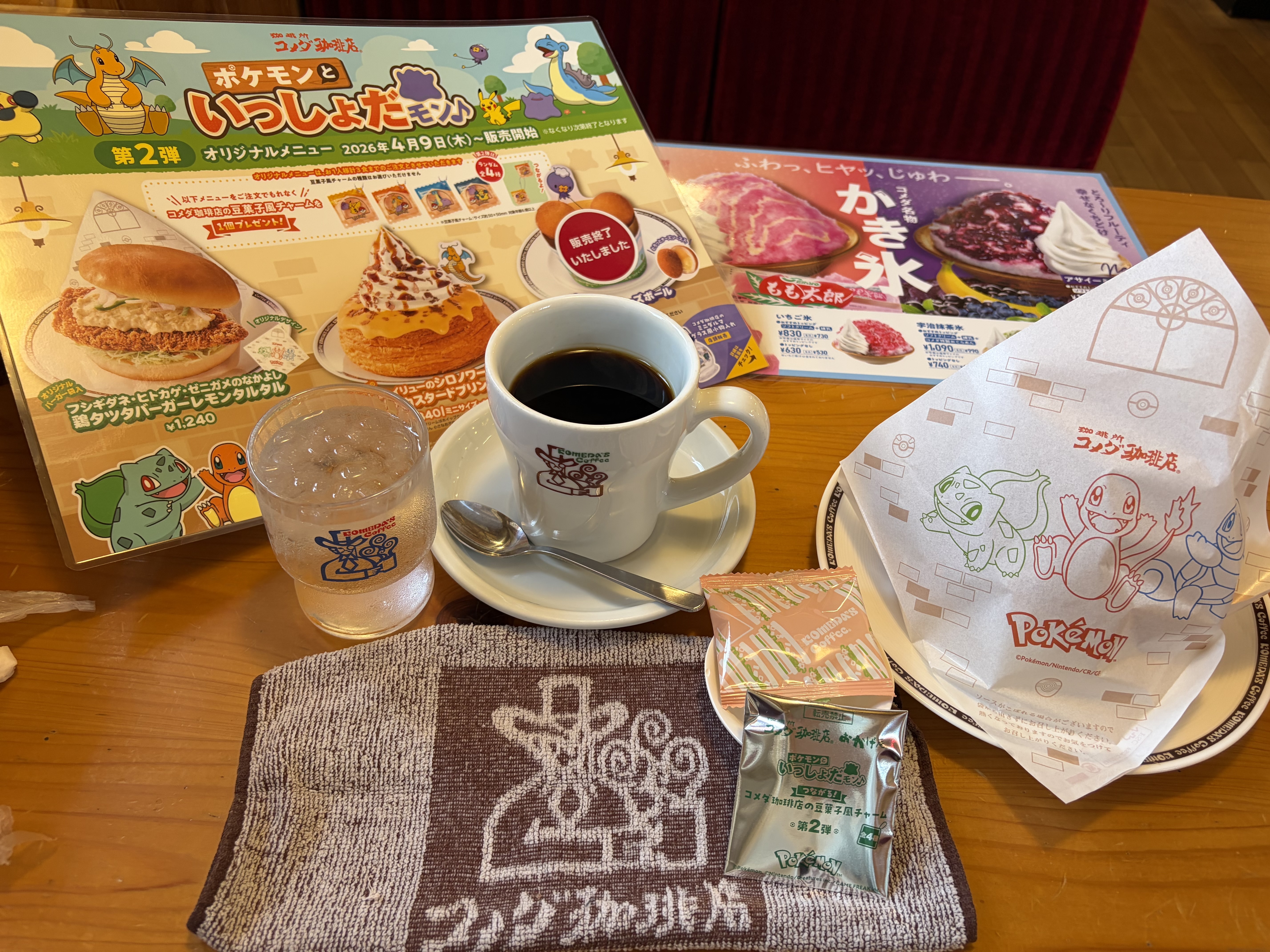 トップ > コメダ写真館 > ケーキのテイクアウト❣️ ギルバート 2026/04/28 21:19 ケーキのテイクアウト❣️ 友人とゴールデンウイークの打ち合わせでコメダ珈琲店へ。 お腹をすかせて早めに到着してポケモンの鶏タツタバーガーいただきました。サクサクの鶏タツタにレモン味のタルタルソースがとても爽やかでした👍 友人到着して一緒にお茶になり,カイリューのミニシロノワールをいただきました。プリンカスタード味は好き好き⤴️⤴️ マイコメにはないケーキがあったので、購入してきました🙌🙌 久しぶりのコメダ珈琲店の紙袋に感激🤩 いいね 共有する 共有する X facebook LINE リンクをコピー コメントする 2 件の返信 (新着順) ミュートしたユーザーの投稿です。 投稿を表示 おなかすいた 2026/04/29 09:35 断面ありがとうございます💖(断面すき) 鶏タツタバーガーもキャラメルサレも美しい断面😍 いいね 返信する ミュートしたユーザーの投稿です。 投稿を表示 タダ 2026/04/28 21:56 ギルバートさん、こんばんは。 鶏タツタバーガーレモンタルタル、シロノワールカスタードプリン、美味しそうです。ケーキのテイクアウト、いいですね。 キャラメル サレ、抹茶の雫、美味しそうです。明日も良い一日をお過ごしください。 いいね 返信する ミュートしたユーザーの投稿です。 投稿を表示 ギルバート 2026/04/29 08:21 タダ タダさん、おはようございます😃 コメントありがとうございます😊 どれも美味しいですね👍 ケーキは今日いただきますね。 タダさんも良い1日をお過ごしくださいね❣️ いいね 返信する
