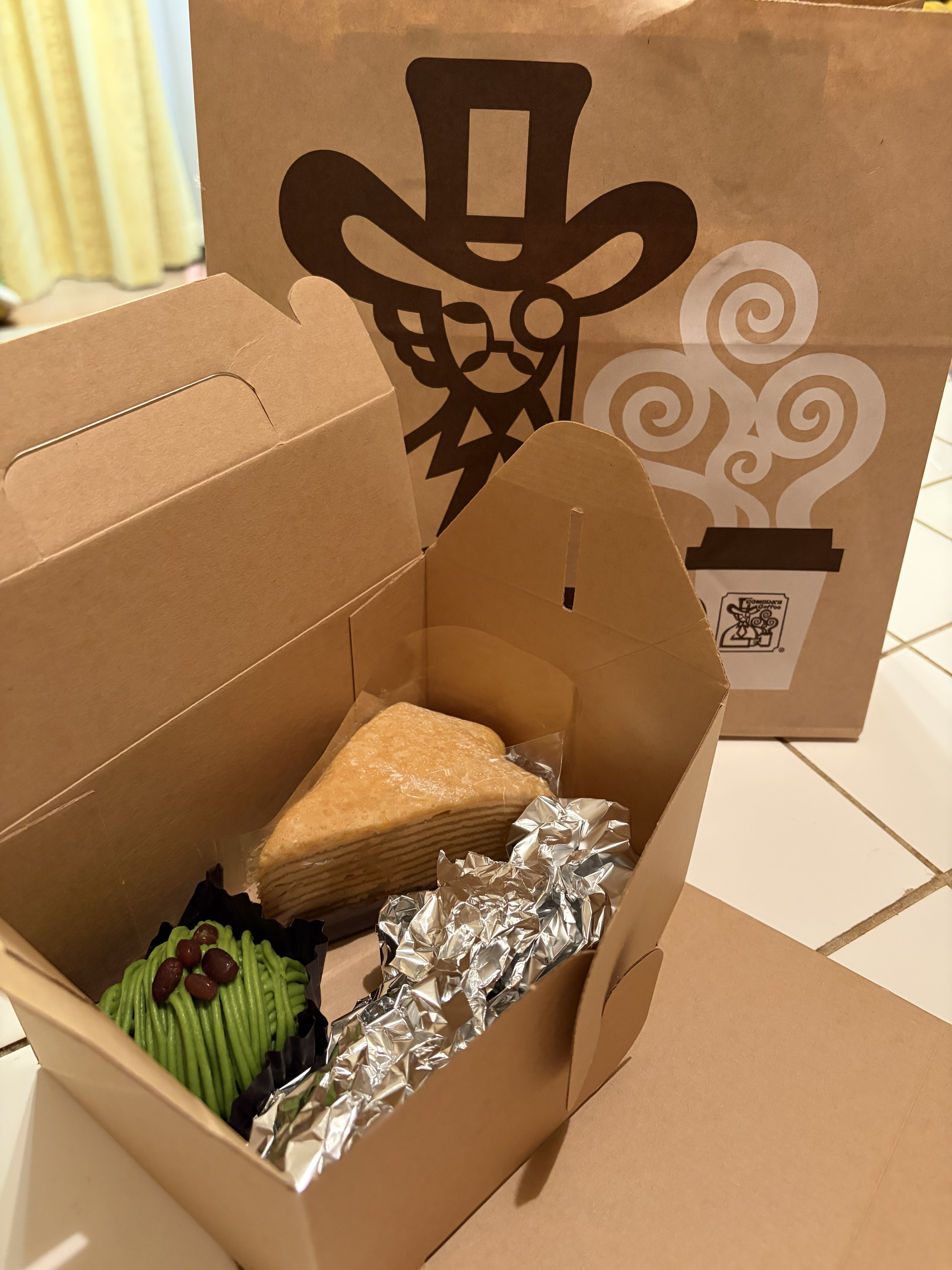 鶏タツタバーガーレモンタルタル、シロノワールカスタードプリン、美味しそうです。ケーキのテイクアウト、いいですね。