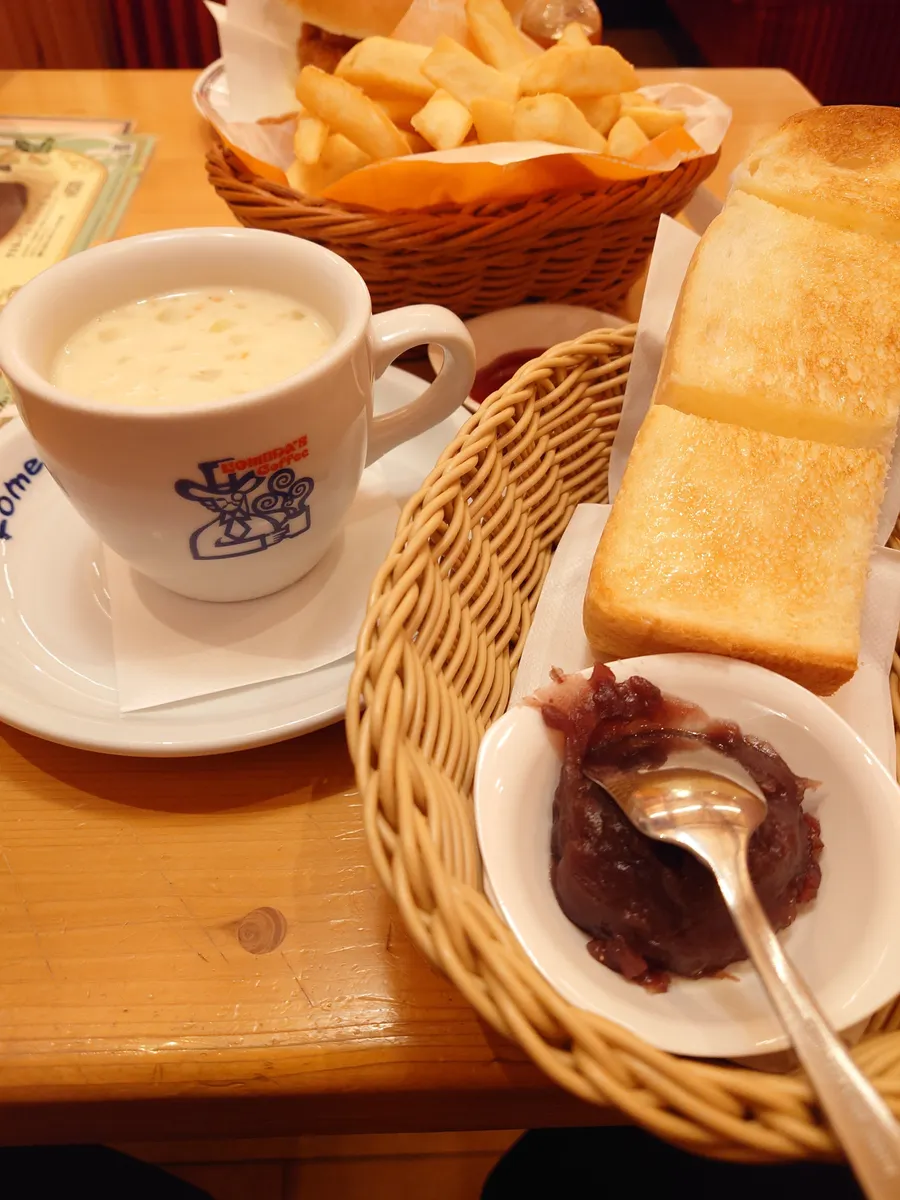 旨っ!旨すぎる!モーニングのパンとの相性が良すぎて、あんこ使わずパンは全部クラムチャウダーへ笑