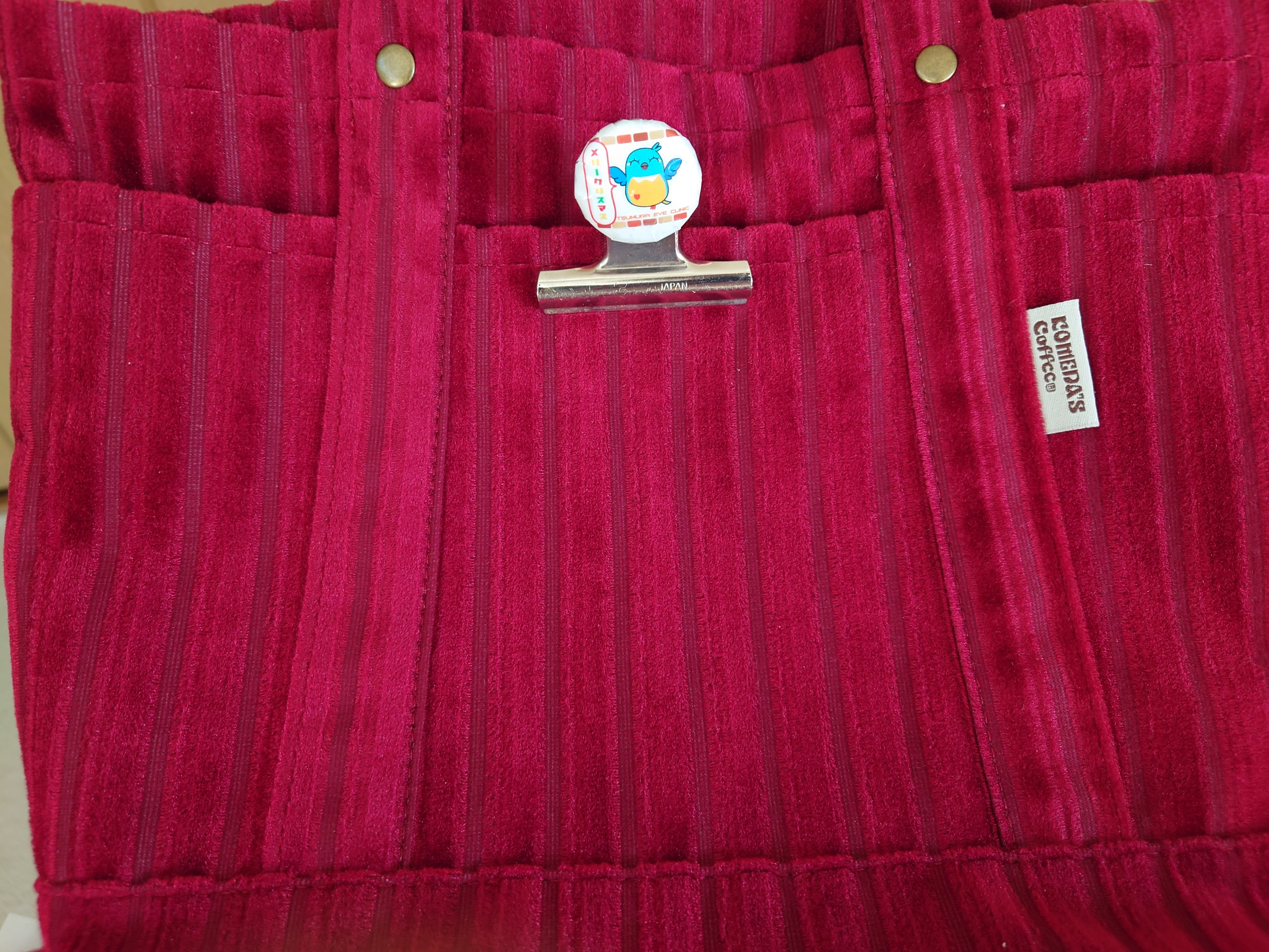 私も拝見させていただき、みいこさんのアイデアに感動しました。お菓子の袋などの部分を綺麗にボタンにつけて,さらに、ベロア生地を綺麗に貼り付けているところに感動しました👍
