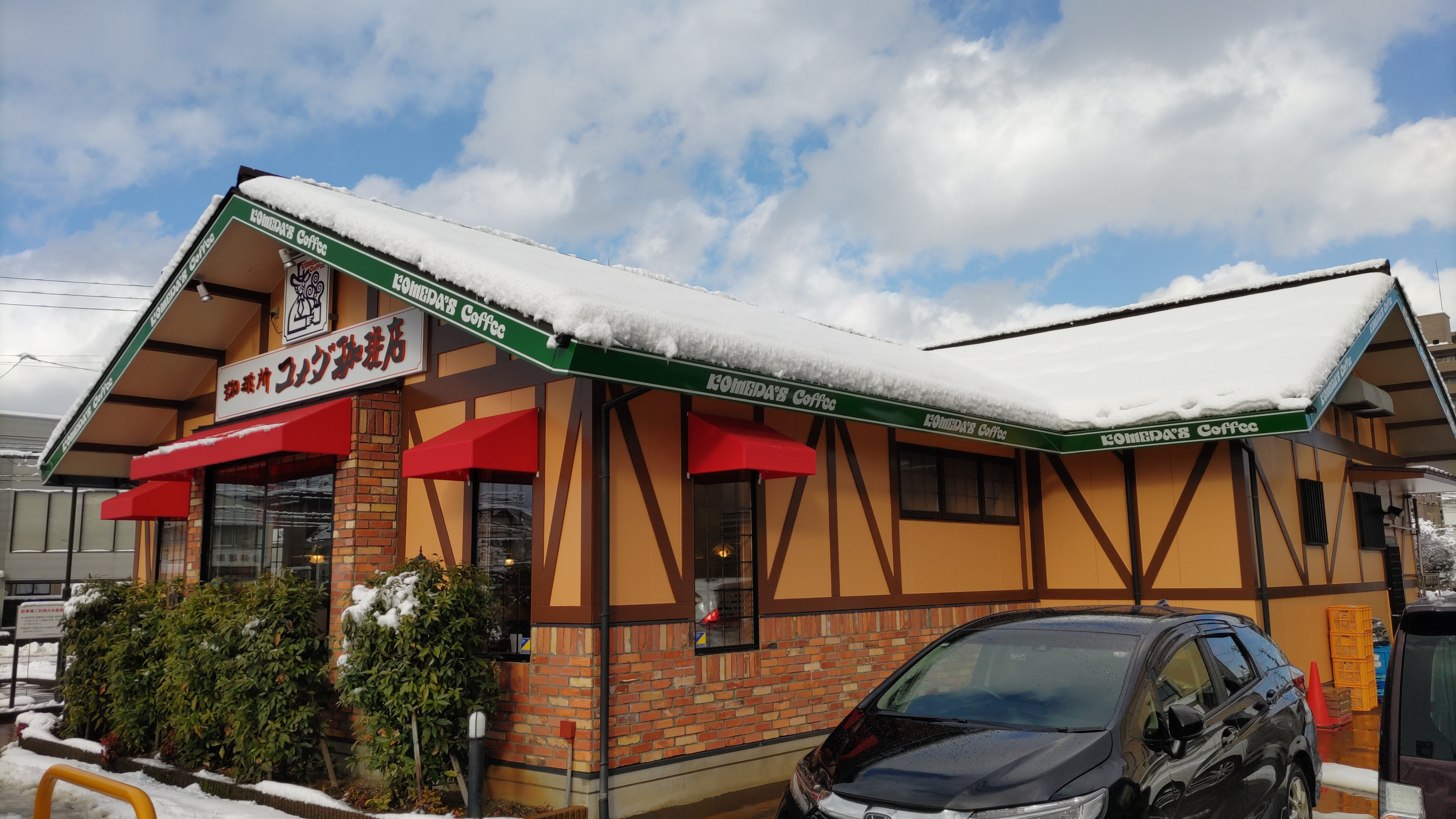 投稿を表示雪積もってるコメダ、可愛らしいし、綺麗だけど、雪落ちてきたら、大変ですね😅✨❣️