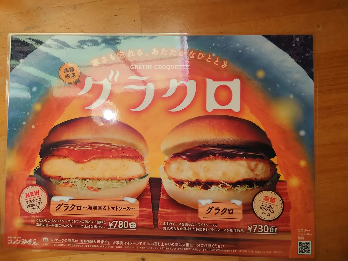 トップ > コメダ写真館 > グラコロ、アツアツのハフハフ みいこ 2025/11/26 15:25 グラコロ、アツアツのハフハフ 今日販売開始なので、ちょっと遅目のお昼ご飯。 さて、何を飲むか。 合うのは、これかなぁ 大好き♡なコーンスープ♥️ で、今日の主役「海老香るトマトソース」何しろ、新製品なもので。 エイヤ〜! 真っ二つ!! パカッ!!! 凄いアツアツなので、火傷しそうになりました。 海老の良いお味でした。 いいね 共有する 共有する X facebook LINE リンクをコピー コメントする 3 件の返信 (新着順) ミュートしたユーザーの投稿です。 投稿を表示 mikarinn 2025/11/29 19:51 コーンスープと合うかもー! 次は私もコーンスープにしようかな。。 でもコーヒー好きとしては直前で変更してしまうかも。 悩みどころ。。🤔 いいね 返信する ミュートしたユーザーの投稿です。 投稿を表示 みいこ 2025/11/30 22:11 mikarinn 今晩は。 コーンスープで注文して、デザートコーヒーというのは、如何ですか? お腹ガボガボになっちゃうかな。 検討を祈ります。 いいね 返信する ミュートしたユーザーの投稿です。 投稿を表示 miyuki 2025/11/26 21:52 グラコロ海老香るトマトソース味。私は平日は行けないので土曜日か日曜日のどっちかに毎コメ顔出します。食べて見てどうでしたか?ボリュームたっぷりなんでしょうね。 いいね 返信する 他 9 件の返信を表示 ミュートしたユーザーの投稿です。 投稿を表示 みいこ 2025/11/27 21:36 miyuki 今晩は。 ボリューム有りました。 ソースが海老のビスクソースみたいな味です。 最初、「トマト」って書いてあったのでケチャップ味?と思いましたが、海老のエキスたっぷりでした。 コロッケもアツアツで変な食べ方をすると口角を火傷しそうです。 齧ると、中身が柔らかいので、「にゅ〜っ」と出て来る所が注意ですね。 ナイフとフォークで食べる事が出来れば使って食べた方が安全です。 以上、注意事項でした。 いいね 返信する ミュートしたユーザーの投稿です。 投稿を表示 miyuki 2025/11/27 21:43 こんばんは。写真迄送って頂きありがとうございます😊聞いてるだけで美味しそうなのが伝わってます。お店で食べると恥ずかしいやら、キャベツ🥬がポロポロお皿に落ちそうな、家が良いかな?悩みます いいね 返信する ミュートしたユーザーの投稿です。 投稿を表示 みいこ 2025/11/27 23:03 miyuki 今晩は。お店に行く時は、私は、いつも、1人なので、なるべくカウンター席で頂きます。 カウンター席って自分の世界みたいな感じで、大口を開けて食べても、恥ずかしく無いので、特にこういう食べ物は、カウンター席で頂くのが、好きです。 お持ち帰りは、そんなに時間がかからないのですが出来立てを食べた方が美味しいと思います。 …個人的な意見ですが。 いいね 返信する ミュートしたユーザーの投稿です。 投稿を表示 miyuki 2025/11/28 07:03 みいこ おはようございます😊私も大体1人で行ってます。2名様のテーブルで食べてるので、みいこさんみたいにカウンターで食べれば仕切りもあるからその方が良いかな。やっぱり店内が良さそうですね😊ありがとうございます😊 いいね 返信する ミュートしたユーザーの投稿です。 投稿を表示 みいこ 2025/11/28 07:41 miyuki おはようございます! コメダもですが、近隣にステーキや、ハンバーグの専門店があり、改装オープンした時にクーポン券があり、ハンバーガーをテイクアウトしました。 時間が経過してしまった為、やはり、味が落ちてしまい、テイクアウトするなら、直ぐに食べないと、いけないなぁと感じました。 ま、失敗してからテイクアウトは、考えて買わないといけないなぁと思っております。 グラコロは、アツアツがやはり、美味しいので、お店で食べた方が美味しいと思います。 …個人的な考えなんですが。 いいね 返信する ミュートしたユーザーの投稿です。 投稿を表示 miyuki 2025/11/29 19:24 こんばんは。今日早速グラクロを食べて来ました。テーブル席に座りボリュームたっぷりで慌てずゆっくりこぼさず食べる事が出来ました。店内で熱々で火傷しそうな位アチアチって言いそうになってました。隣の人もグラクロを食べてました。 いいね 返信する ミュートしたユーザーの投稿です。 投稿を表示 みいこ 2025/11/29 19:33 miyuki 今晩は。 昨日、朝からグラクロ、私の隣に座った人も注文していました。それもフォークで。 私のよく利用するコメダ珈琲は黙っているとフォークが出て来ない。もうちょっとお客様の身になってよ〜 …といつも、感じます。 切らない方が良かったのかなぁ。などと1度食べただけなのに。 でも、熱々で美味しかったてす。 上手に食べる事が出来る人、尊敬します。 いいね 返信する ミュートしたユーザーの投稿です。 投稿を表示 miyuki 2025/11/29 19:39 みいこ 私の今日行ったコメダは何等分にしますか?も聞いて来なかったしフォークも無かったです。タバスコを置かれただけですね。タバスコは使いませんが… いいね 返信する ミュートしたユ