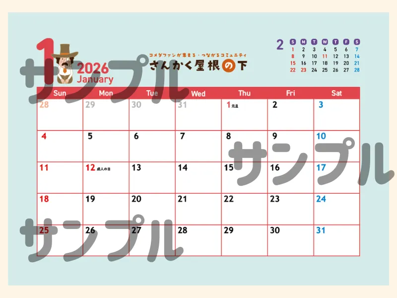 毎月変わるコメダンディのイラスト、2026年はどんなイラストが見られるか、楽しみですね♪